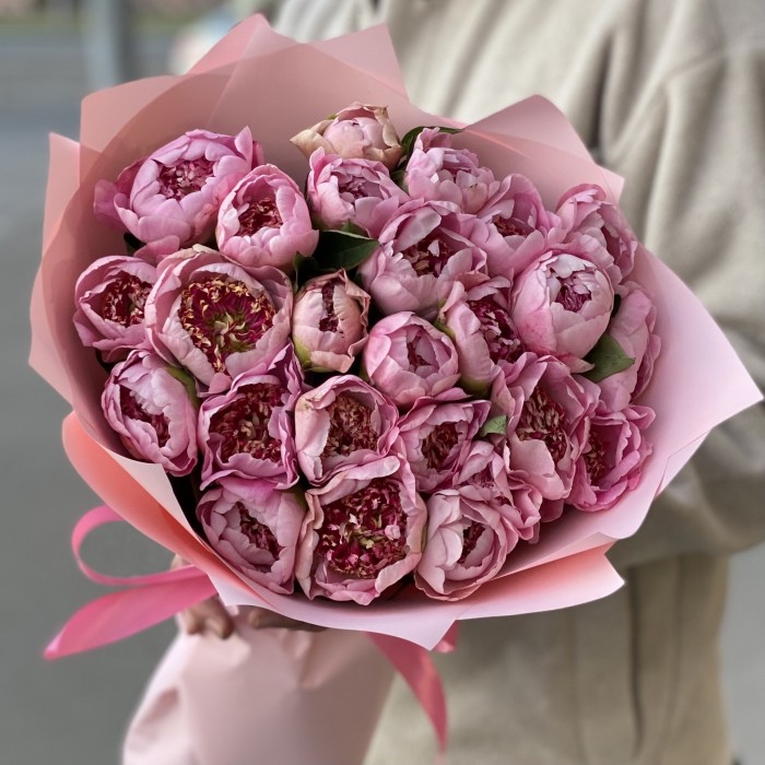 Светло-розовые мини пионы с необычной махровой серединкой порадуют свою получательницу!