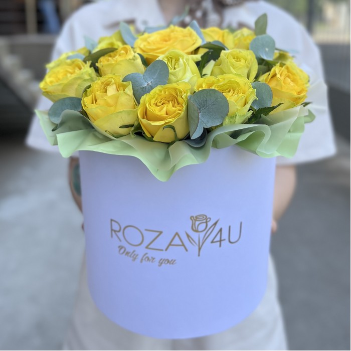 Букет из 25 ярких пионовидных роз сорта Баттеркап в коробке — это стильный и современный подарок, который сочетает в себе нежность и выразительность! Розы Баттеркап славятся своим насыщенным жёлто-абрикосовым оттенком, который символизирует радость, тепло и оптимизм.