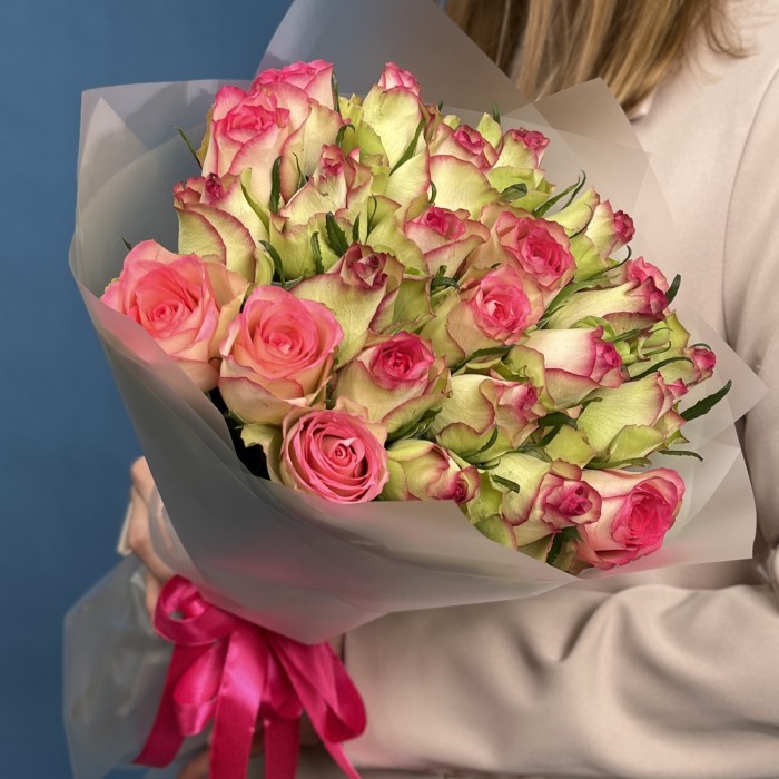 25 зелено-розовых роз Глоу 40 см