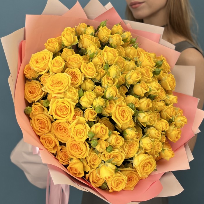 Букет из 25 желтых кустовых роз Еллоу Бейби, высотой 50 см — это яркое и солнечное украшение, наполненное теплом и радостью.