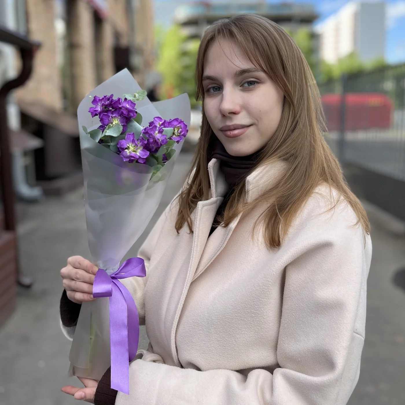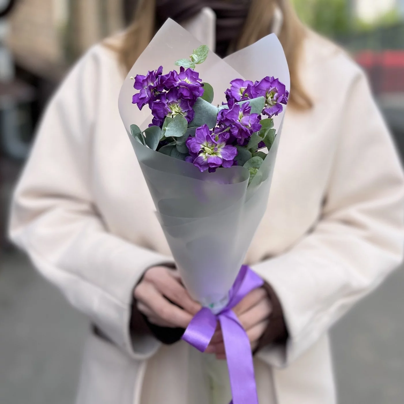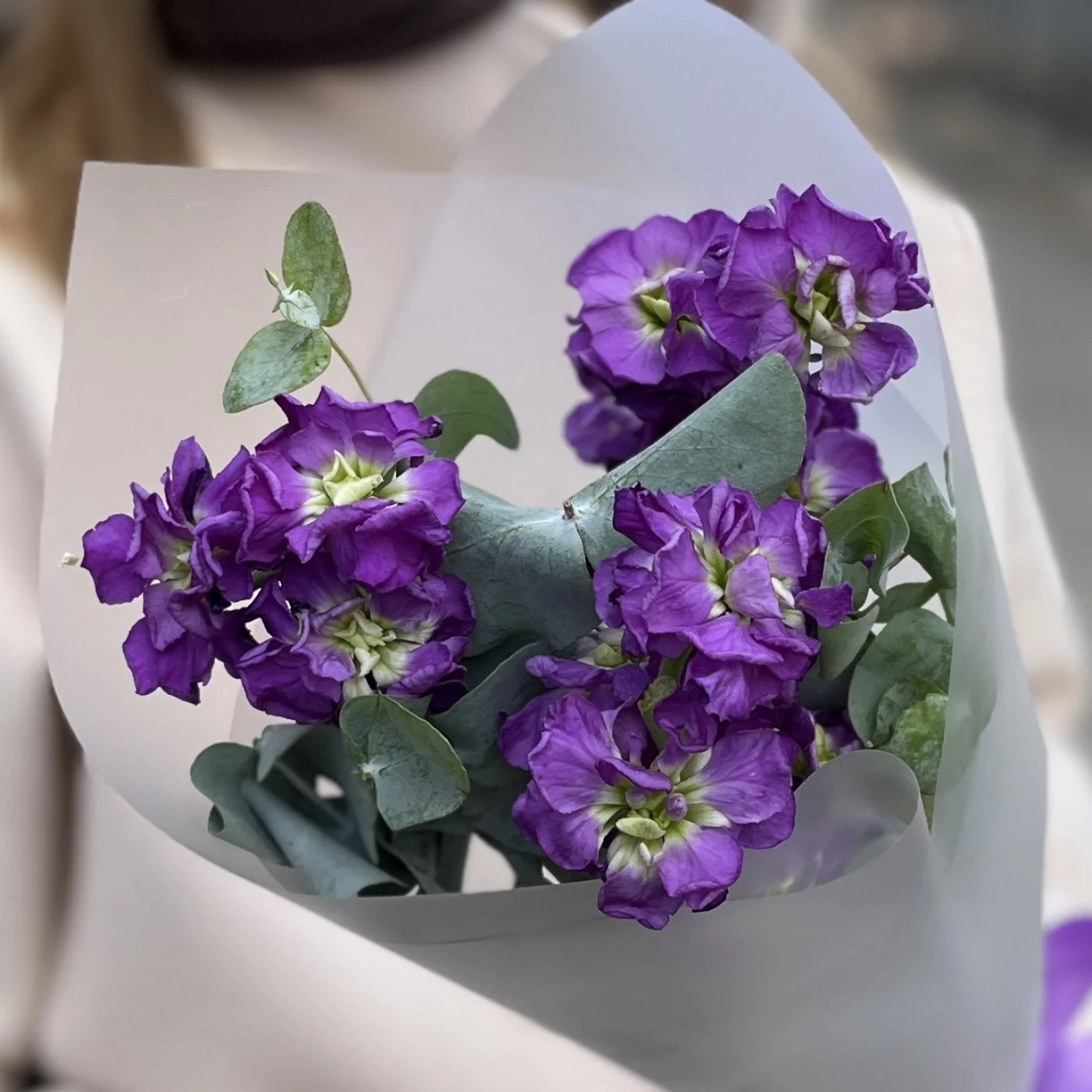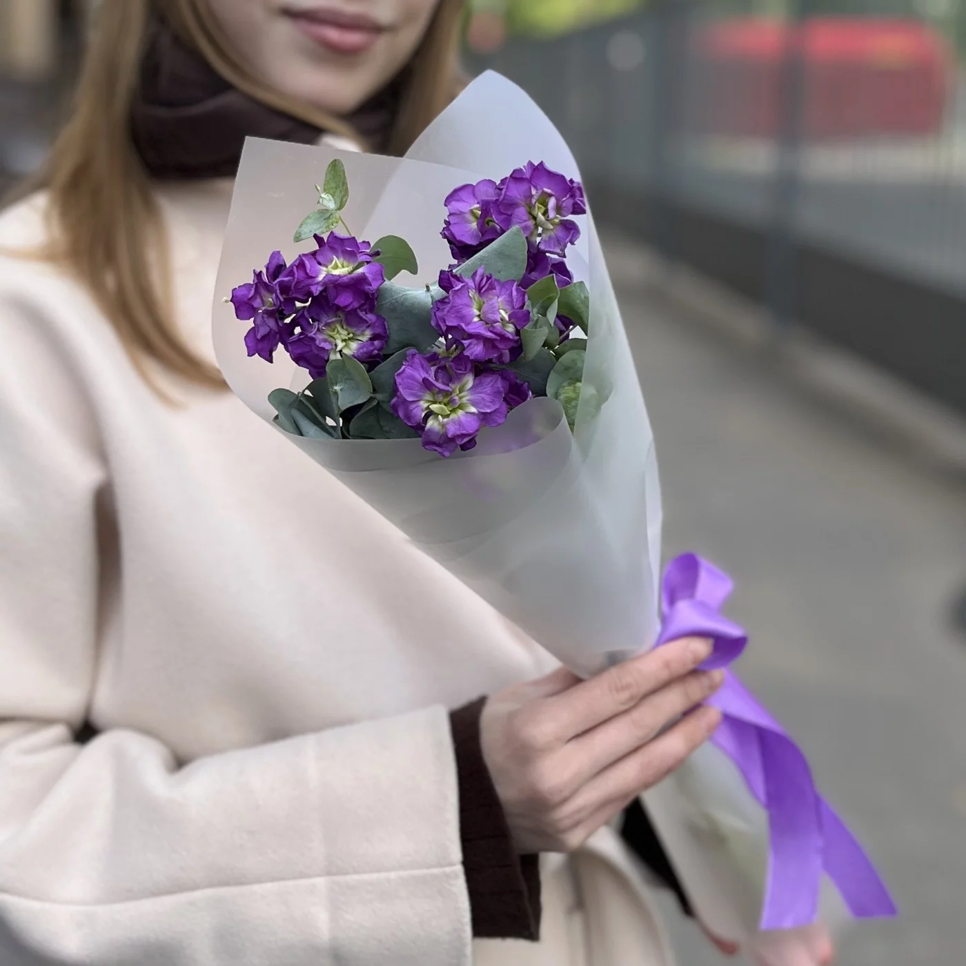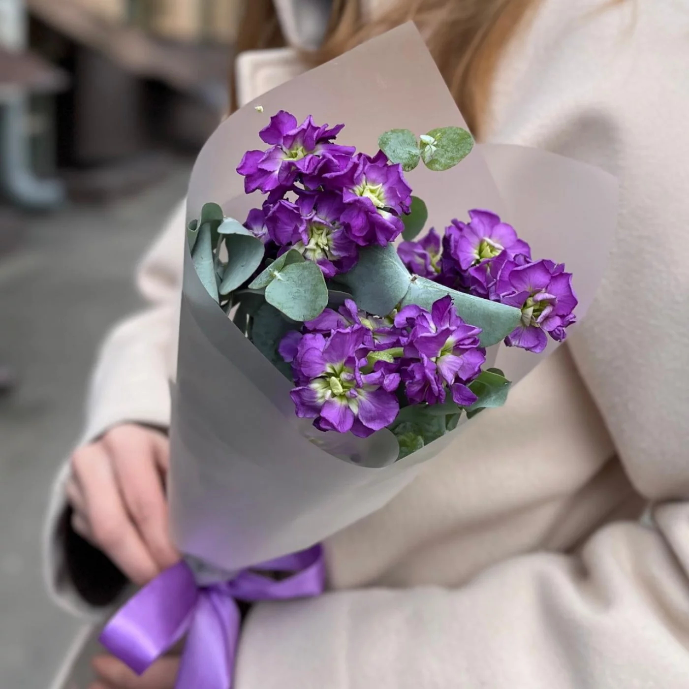 Букет из 3 фиолетовых маттиол с эвкалиптом — это компактная и стильная композиция, которая привлекает внимание своим ярким цветом и ароматом. Нежные фиолетовые маттиолы излучают сладковатый, чарующий запах, создавая атмосферу уюта и романтики. Эвкалипт добавляет свежесть и зелень, подчеркивая элегантность букета. Этот букет станет прекрасным подарком для близких или оригинальным акцентом в интерьере.