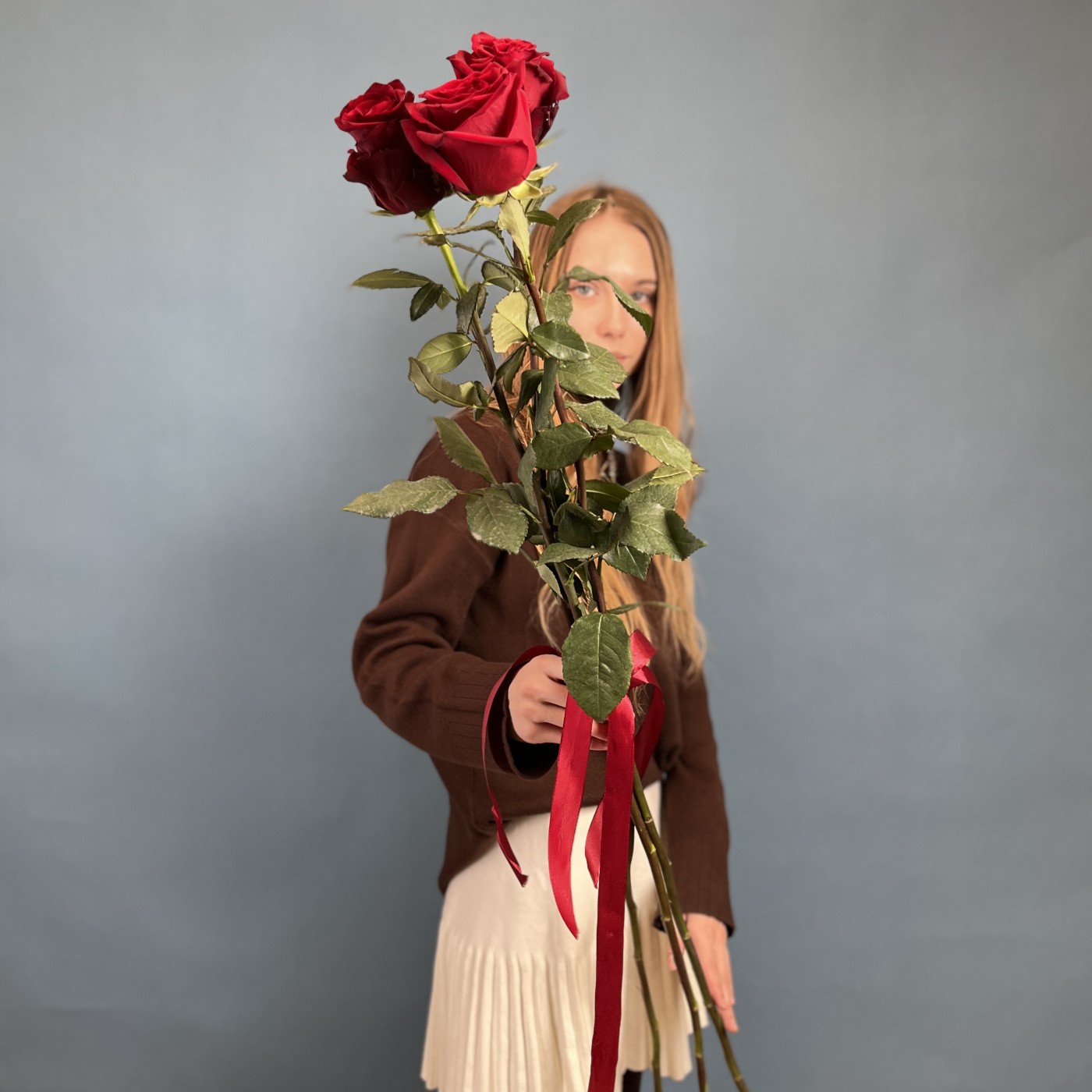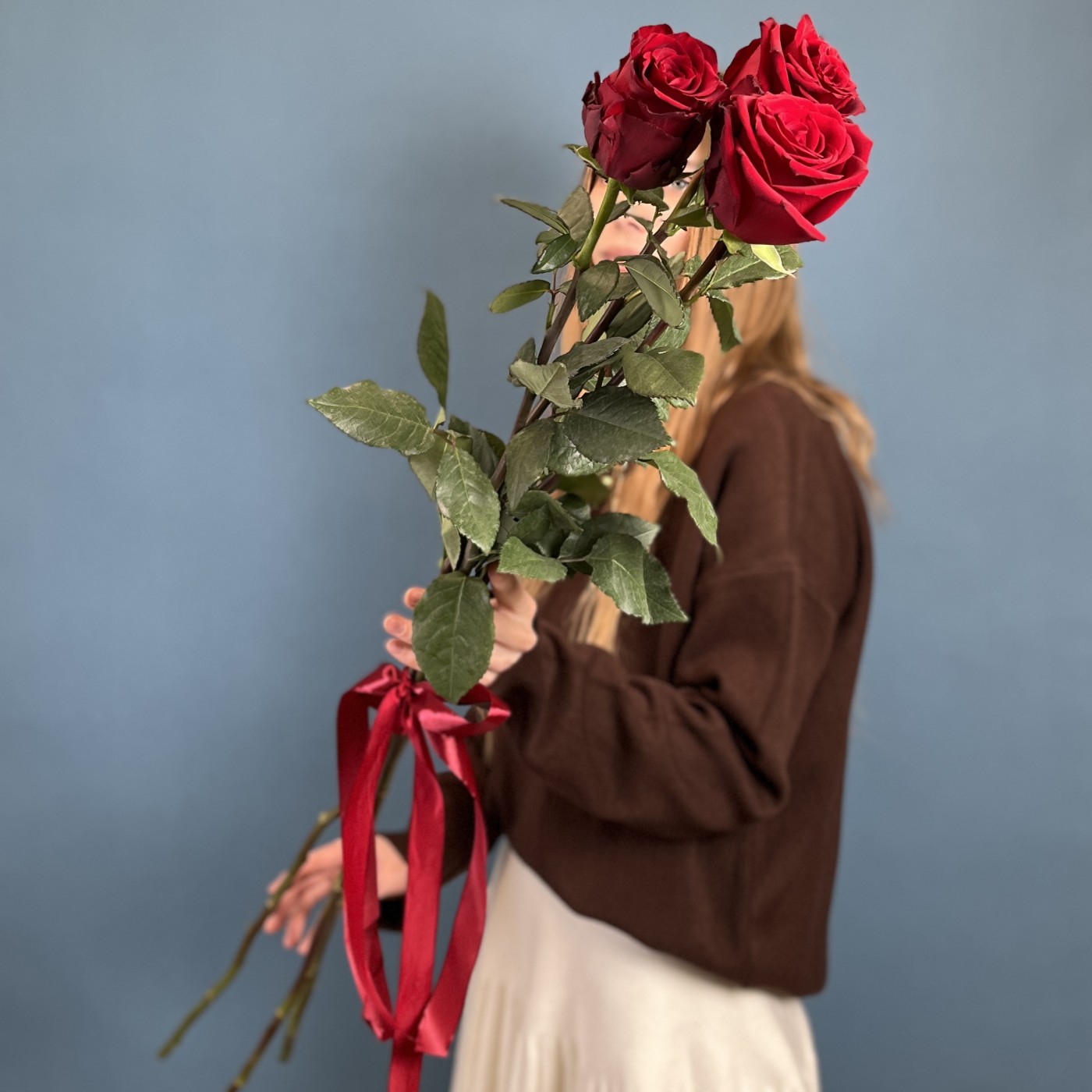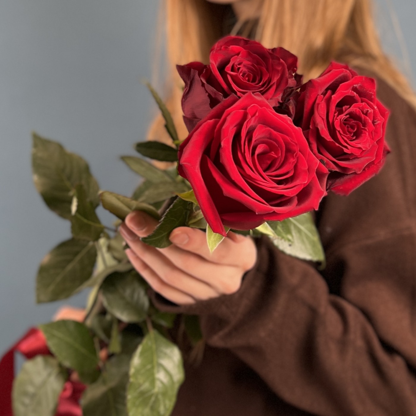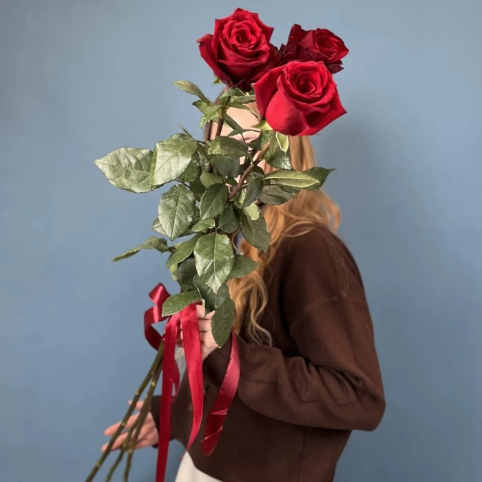 Букет из 3 красных роз высотой 120 см — это изысканный и стильный выбор, который отлично подойдет для различных случаев. Высокие стебли и яркие бутоны создают впечатляющий визуальный эффект, подчеркивающий романтическую атмосферу.