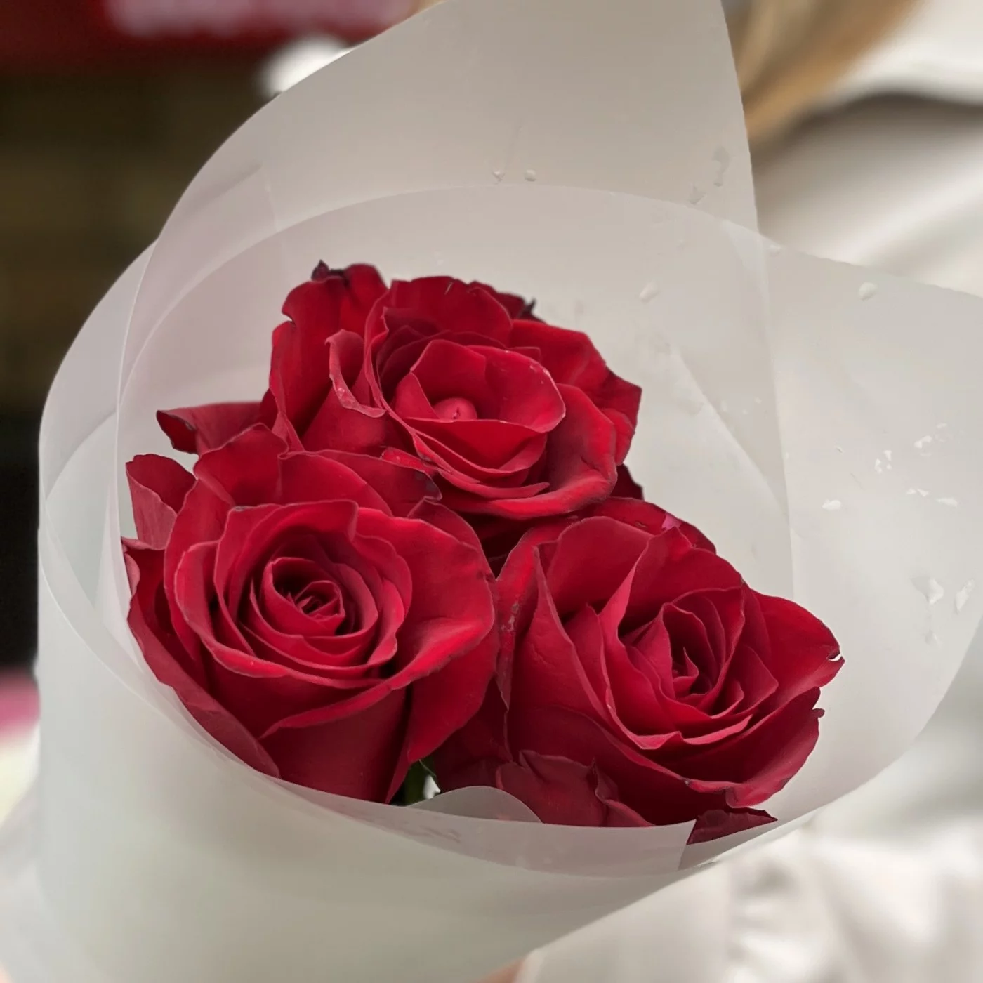 3 красные розы Мадам ред 50 см