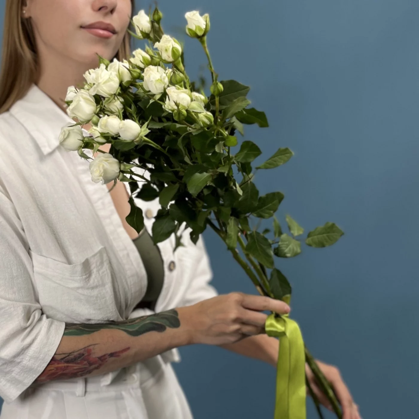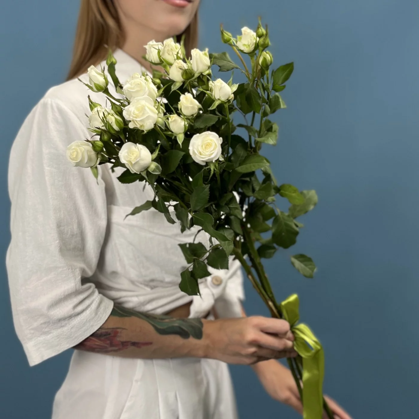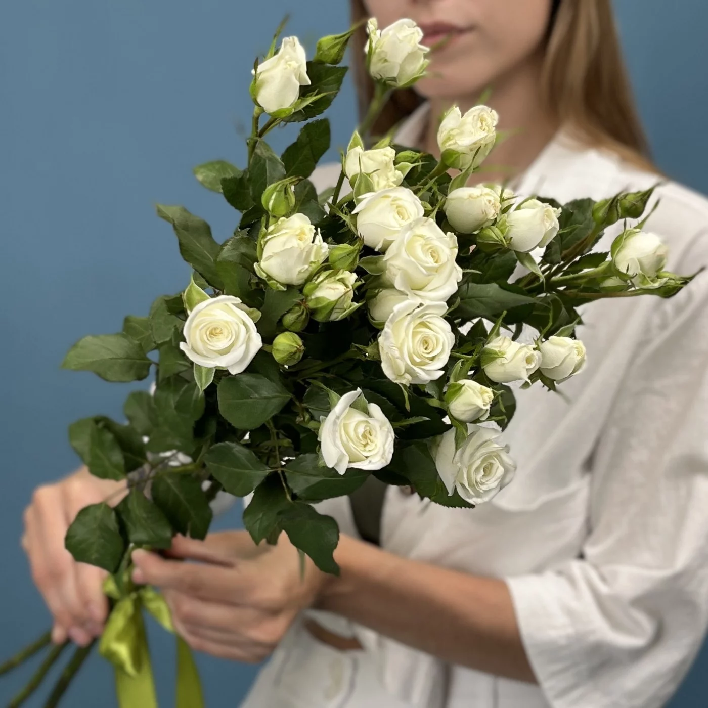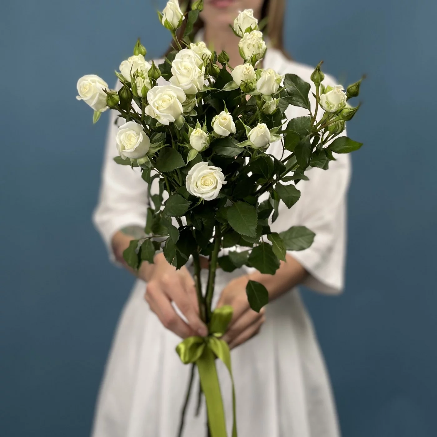Очаровательный букет из 3 кустовых роз сорта Сноу Бабл высотой 70 см — то нежная и романтичная композиция, наполненная свежестью и элегантностью.
