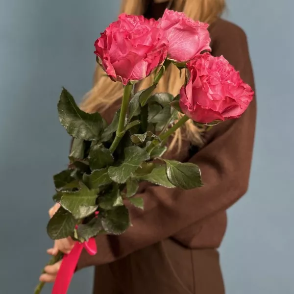 Букет из 3 пионовидных роз Кантри Блюз длиной 60 см — это великолепный способ выразить свои чувства и украсить любое важное событие. Этот цветочный комплимент впечатлит не только своим внешним видом, но и нежным ароматом.