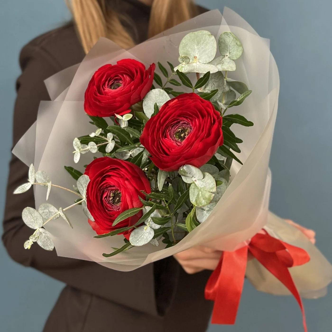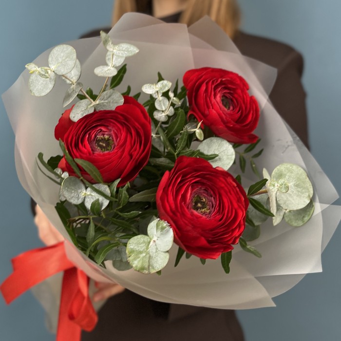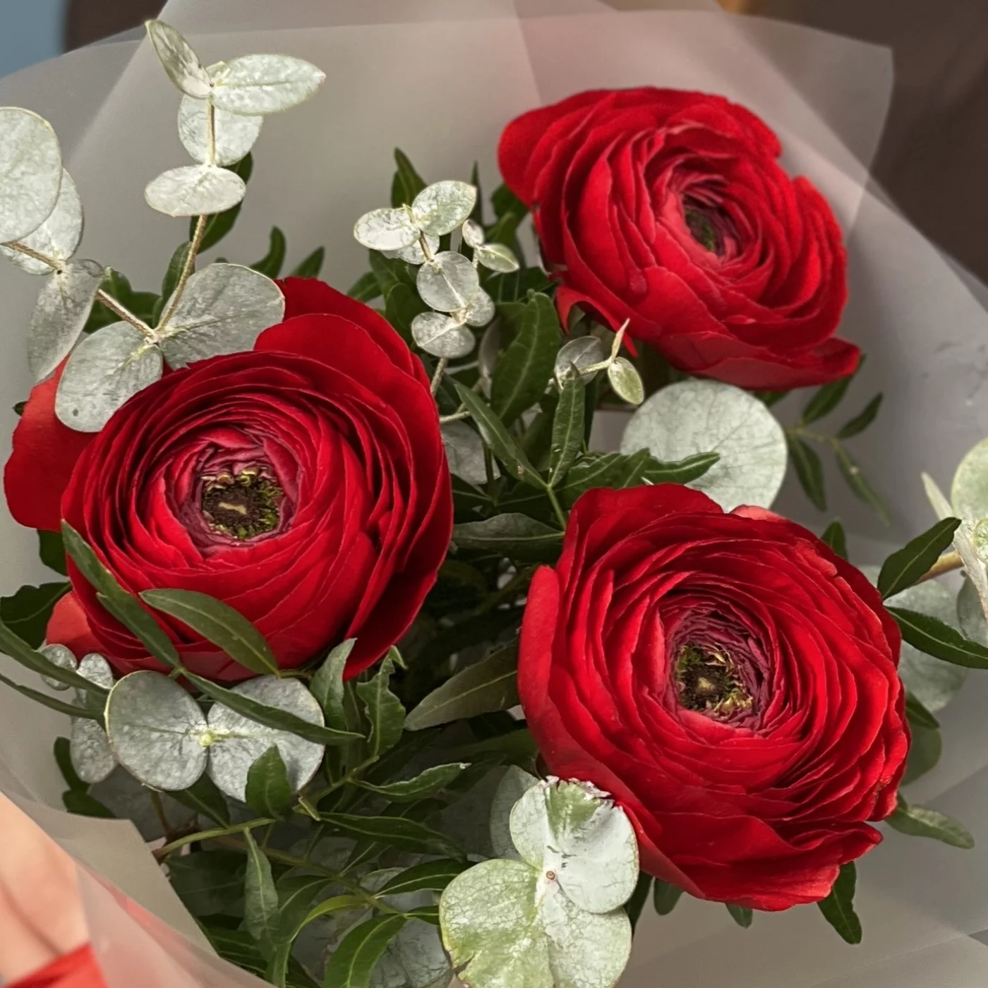 За три месяца мы доставили товар "3 пышных красных Ранункулюса с эвкалиптом" по следующим локациям: