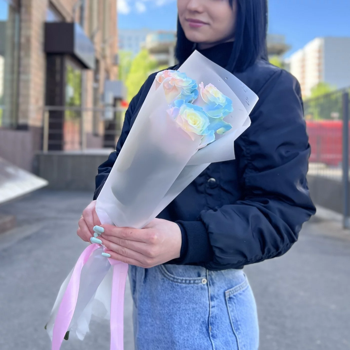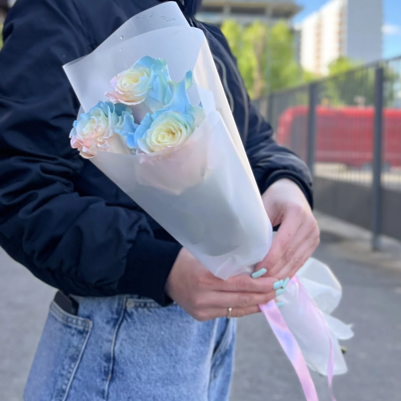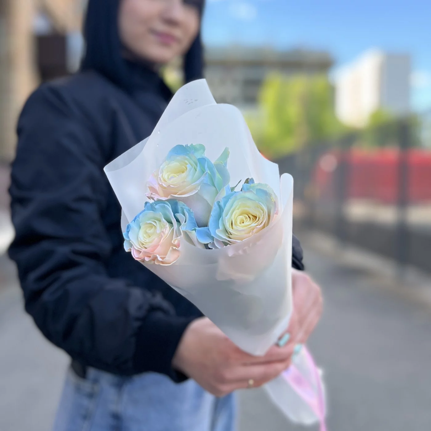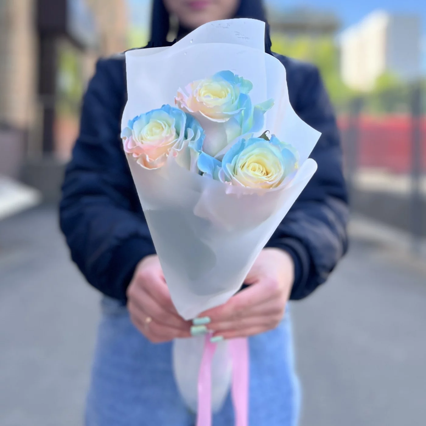 Букет из 3 радужных розово-голубых роз длиной 60 см — это не только красивый, но и оригинальный подарок, который способен произвести впечатление на любого получателя. Эти цветы идеально подходят для выражения самых искренних эмоций и создания незабываемого праздничного настроения.