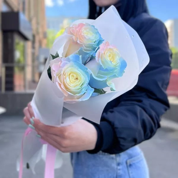 | Роза 60 Эквадор Радужная розов-бело-голубая | 3 |