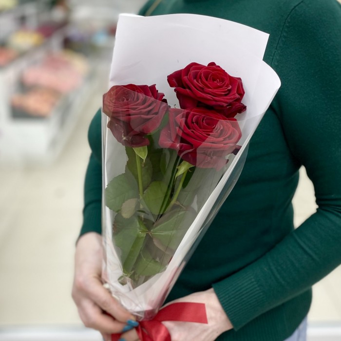 Букет из 3 красных роз станет отличным подарком для подруги или коллеги в день рождения.