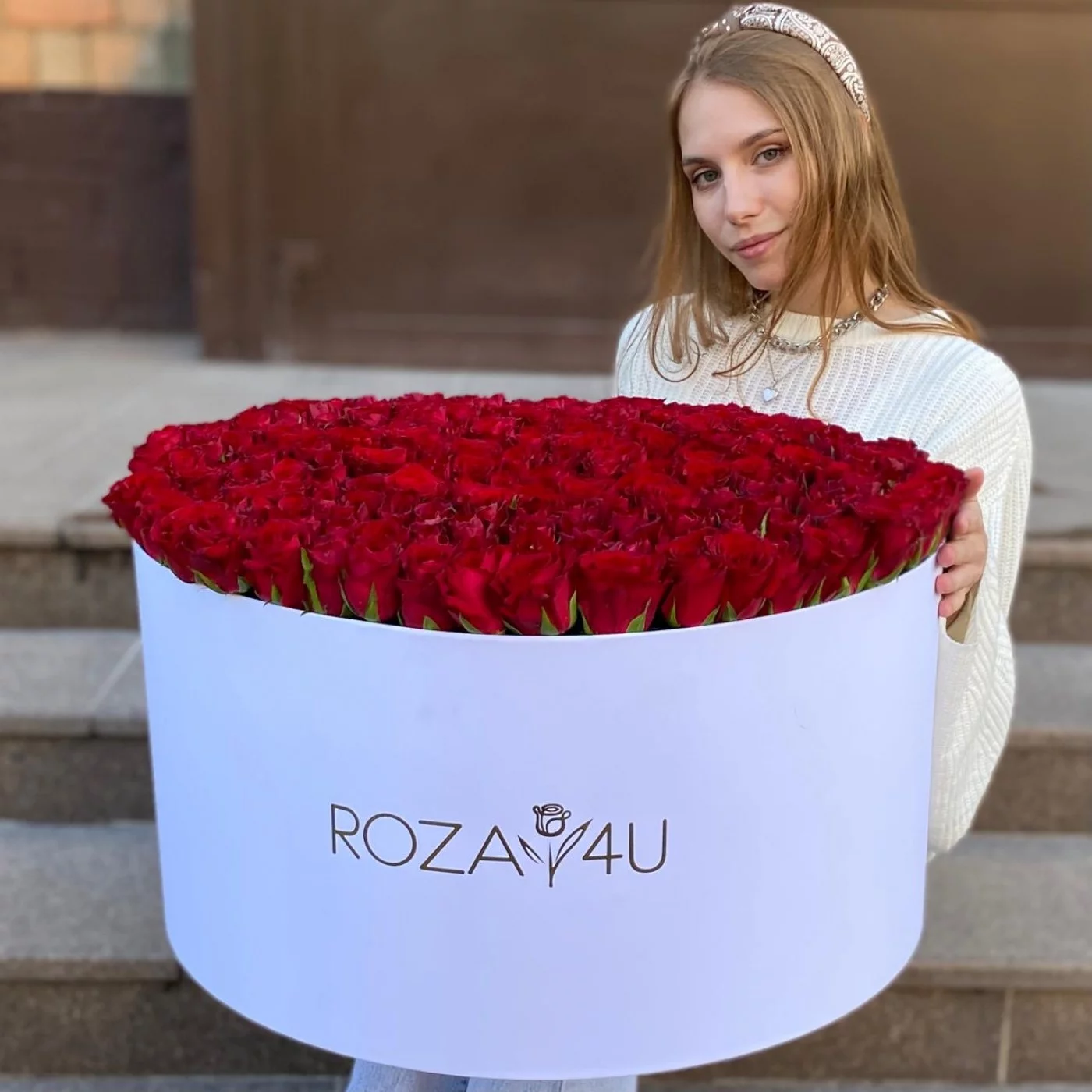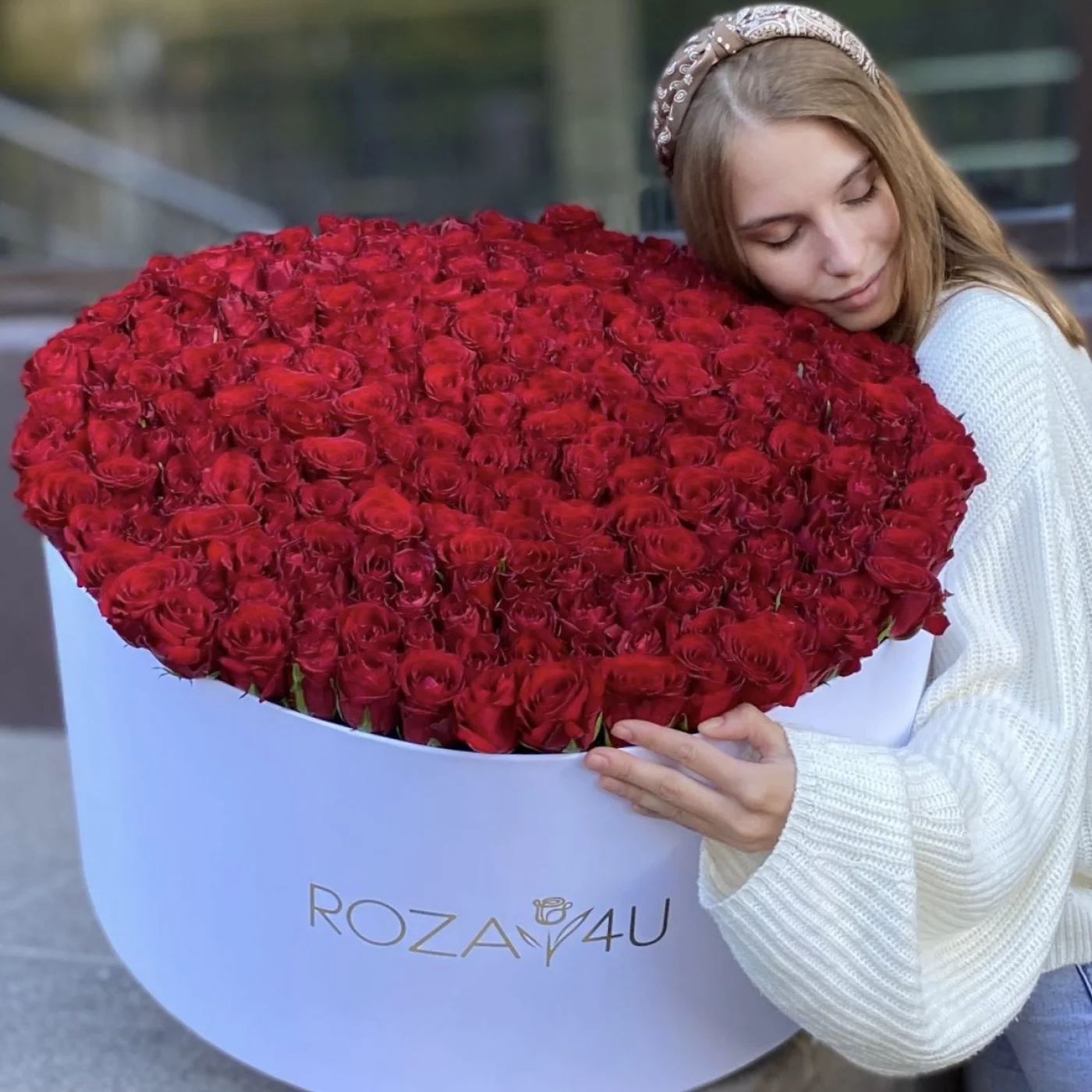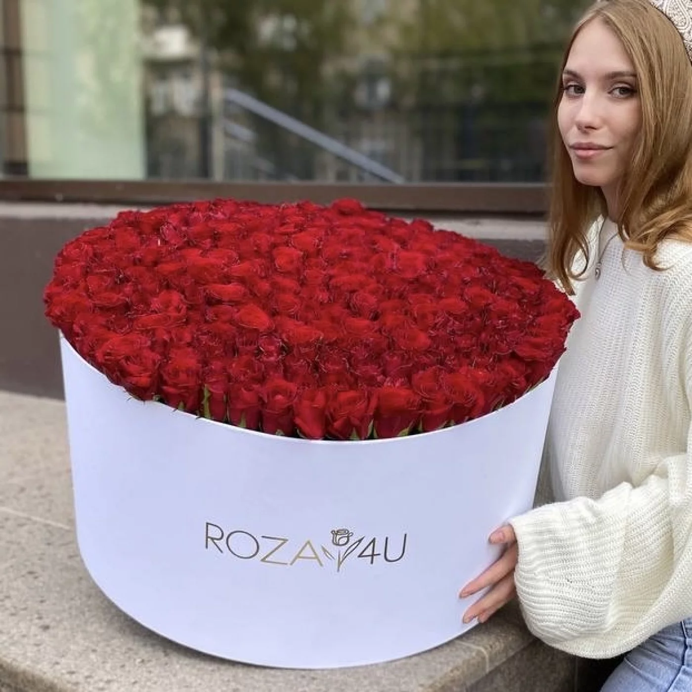 301 красная роза в большой коробке