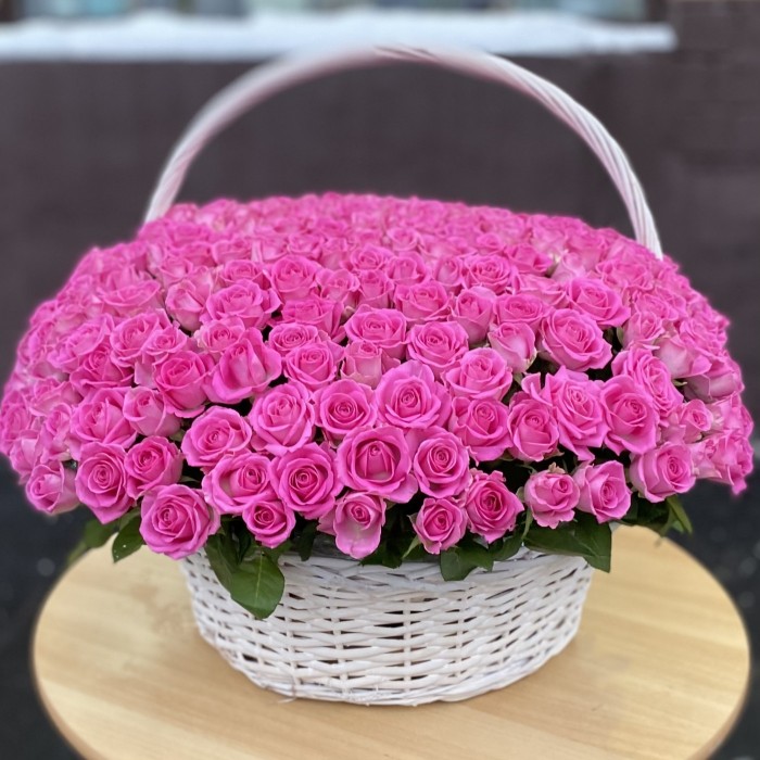 Шикарная композиция из 301 розы розового цвета выглядит ярко и свежо. Цветы аккуратно уложены в декоративную корзинку, привлекают своей романтичностью и великолепием. Такой подарок – символ искренних чувств, безудержной страсти и глубокой нежности