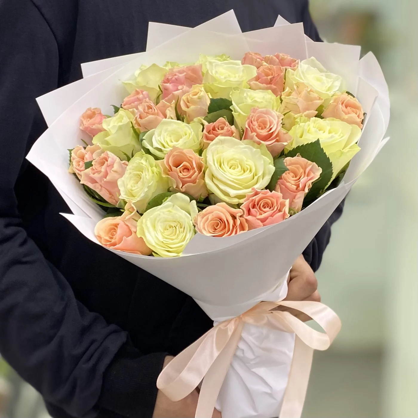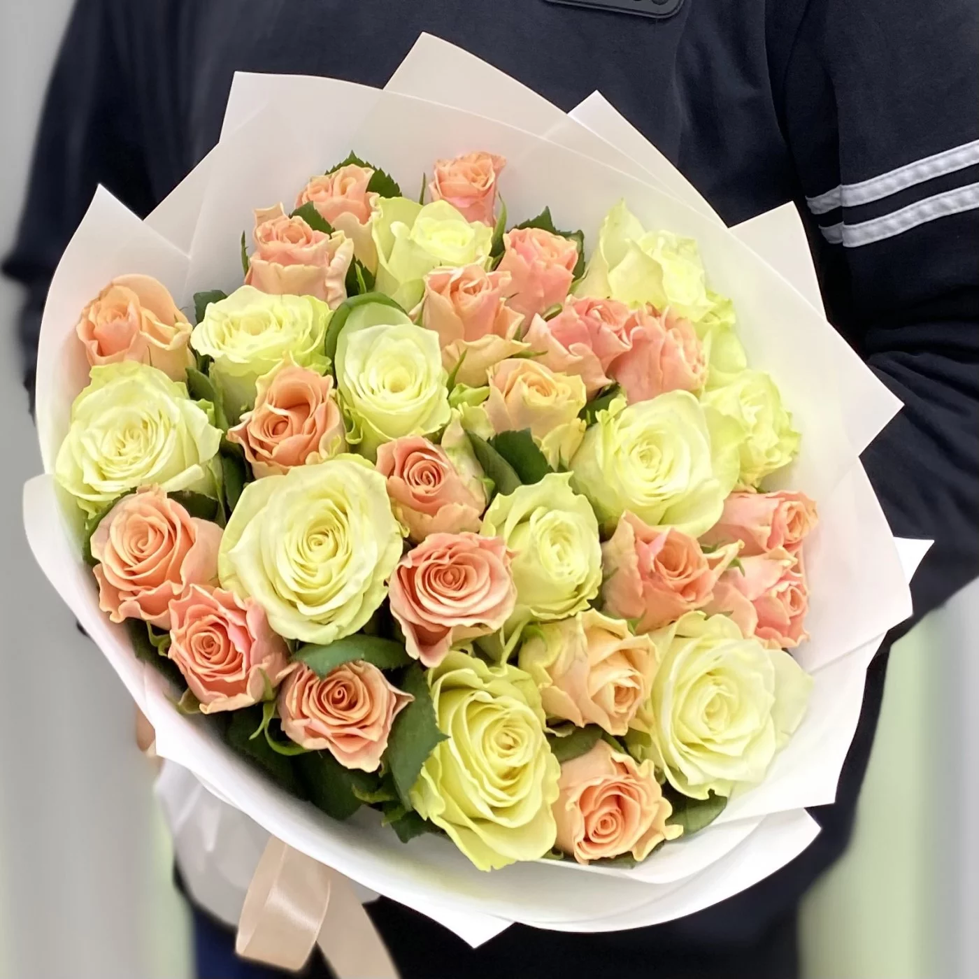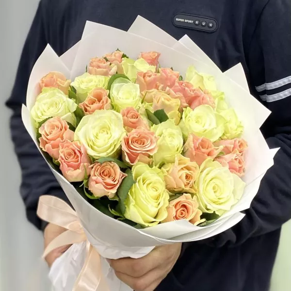 Нежный букет из 31 белой и розово-кремовой розы с тонким приятным ароматом.