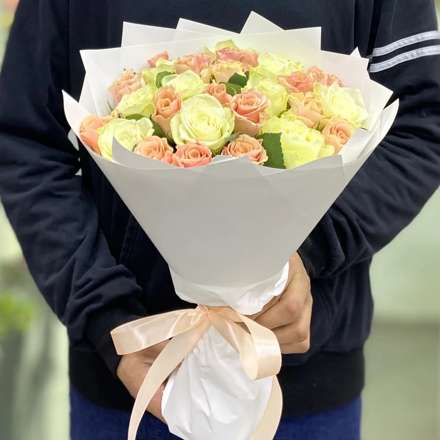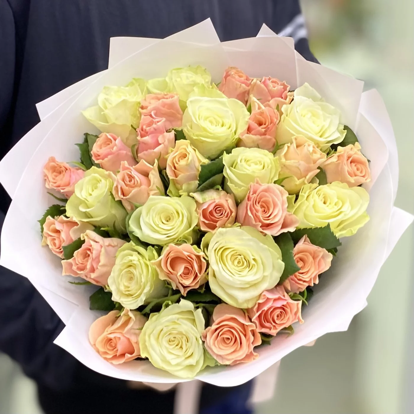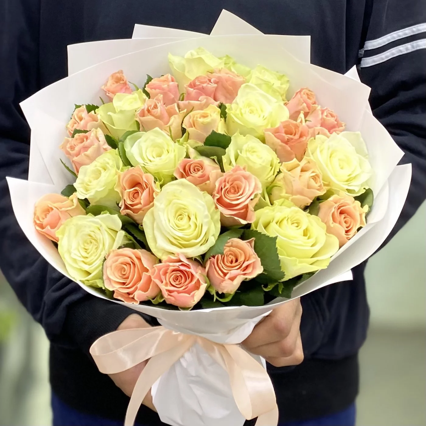 Нежный букет из 31 белой и розово-кремовой розы с тонким приятным ароматом.