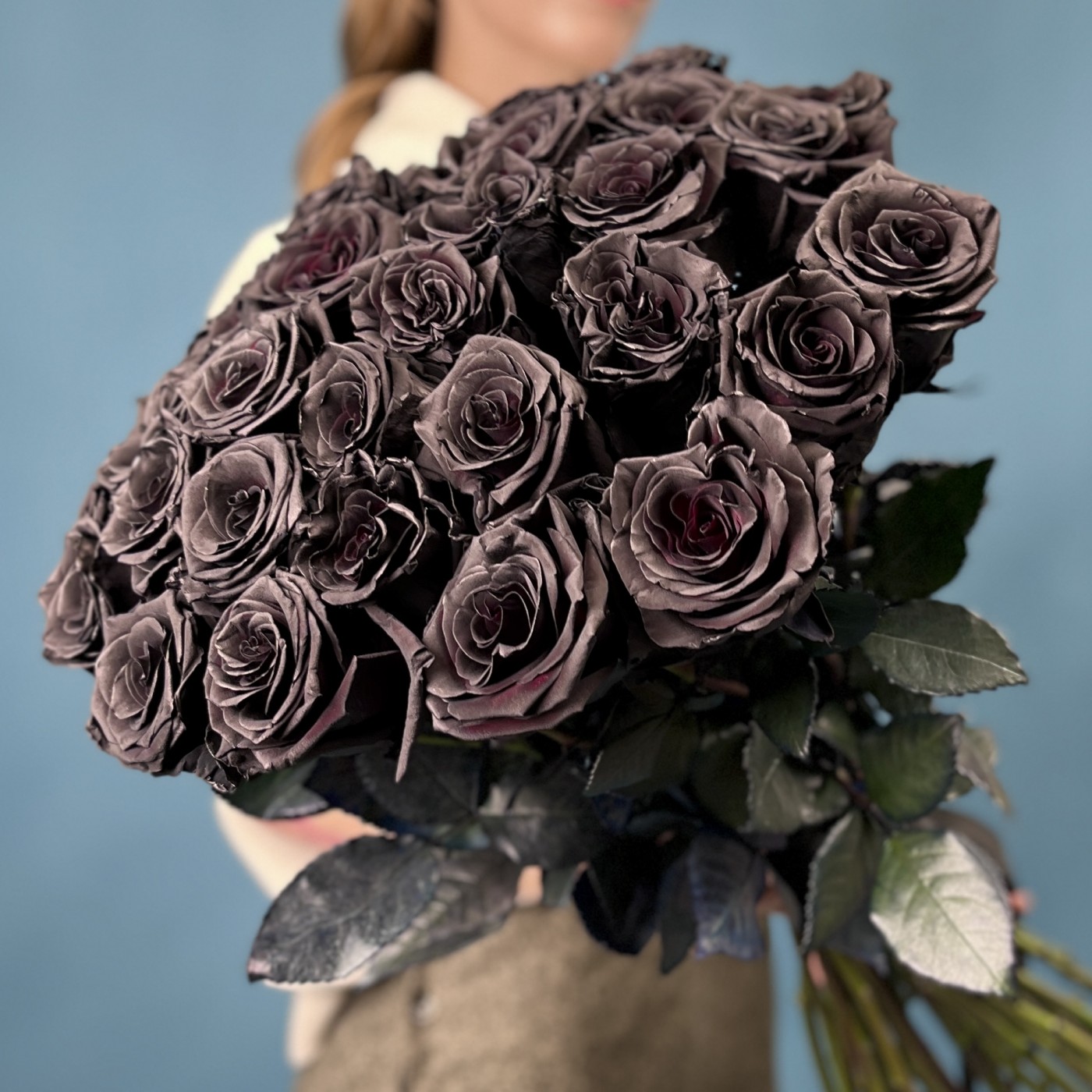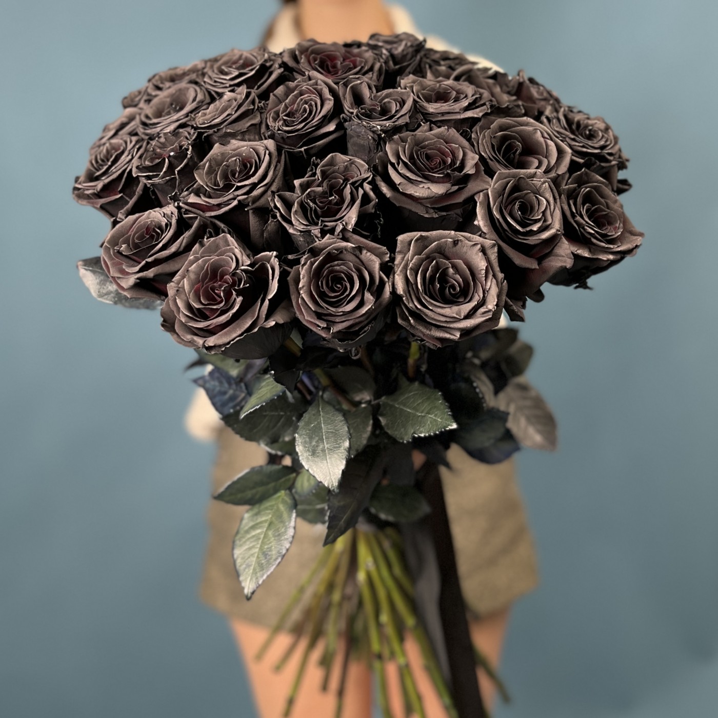 Потрясающий букет из 35 черных роз высотой 60 см — это символ загадочности, элегантности и утонченного стиля.