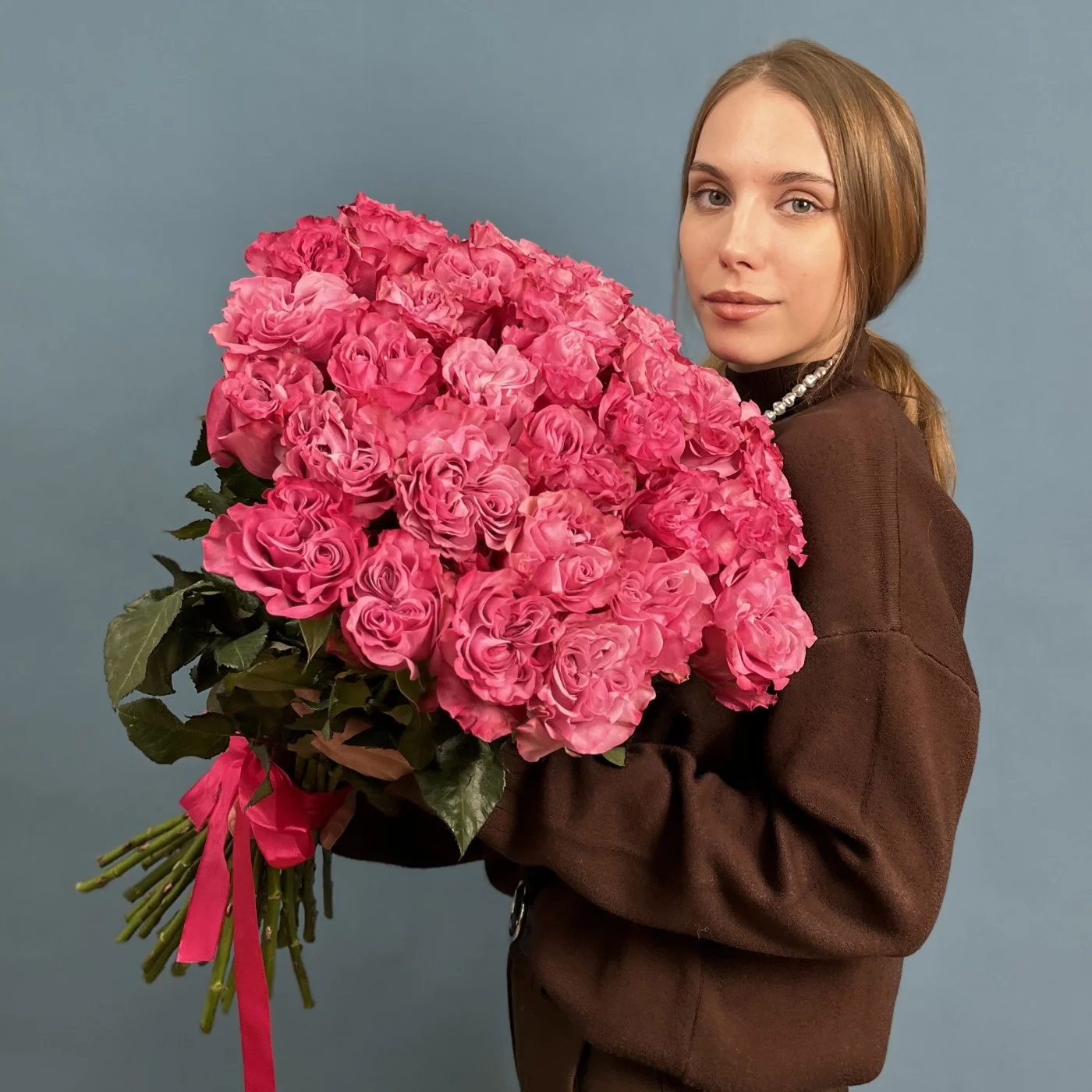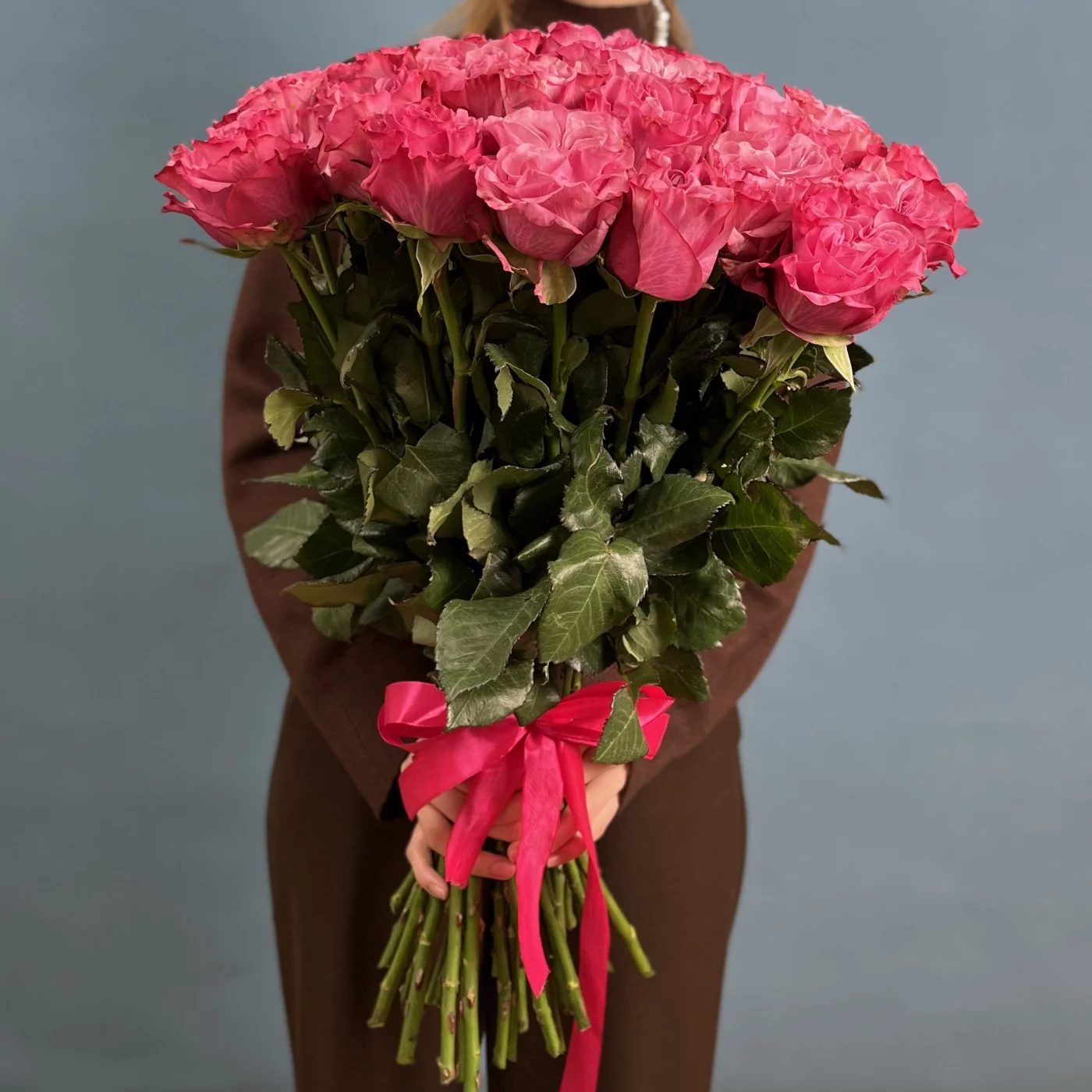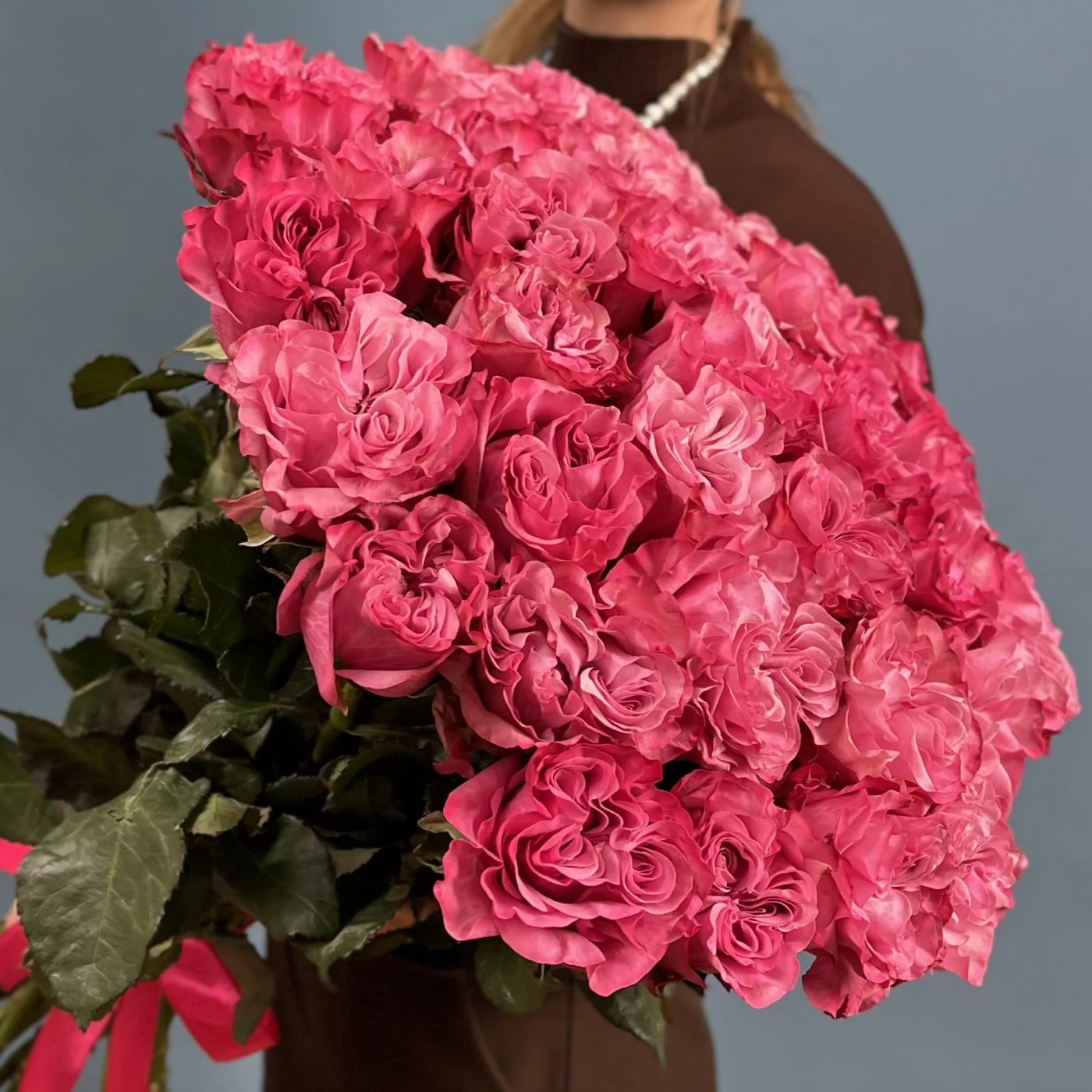 Букет из 35 пионовидных роз сорта Кантри Блюз длиной 60 см — это поистине роскошный и впечатляющий подарок, который станет настоящим акцентом на любом мероприятии.