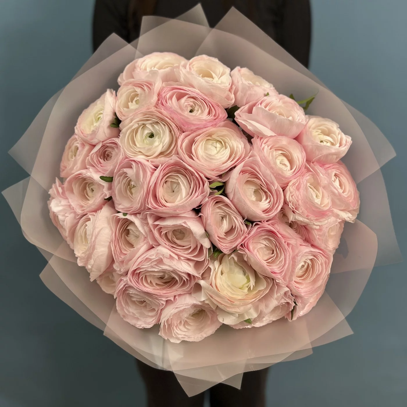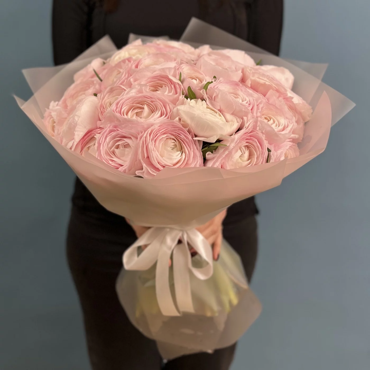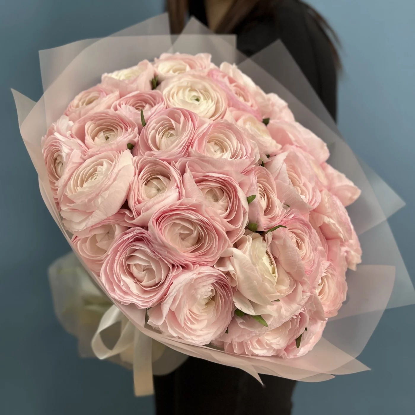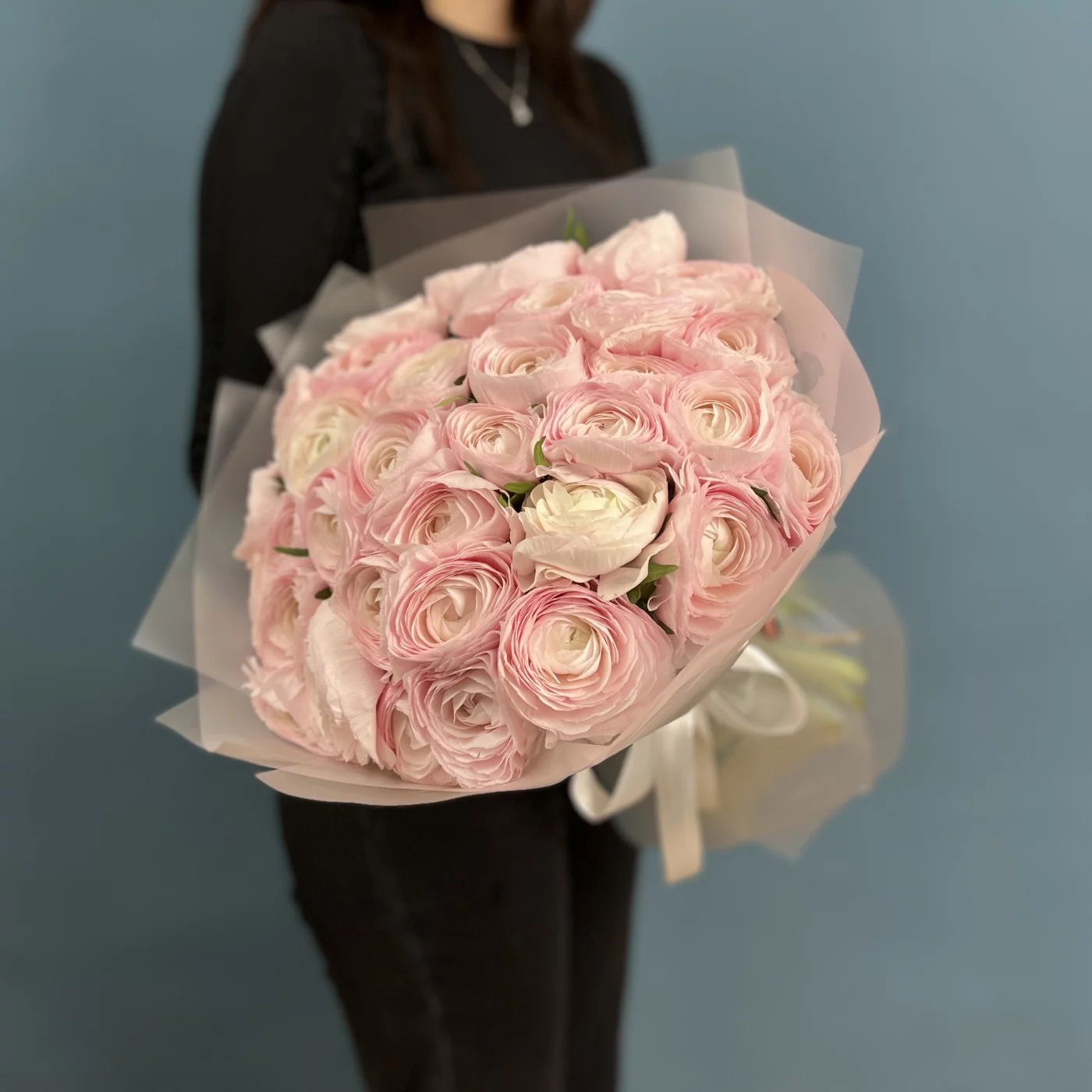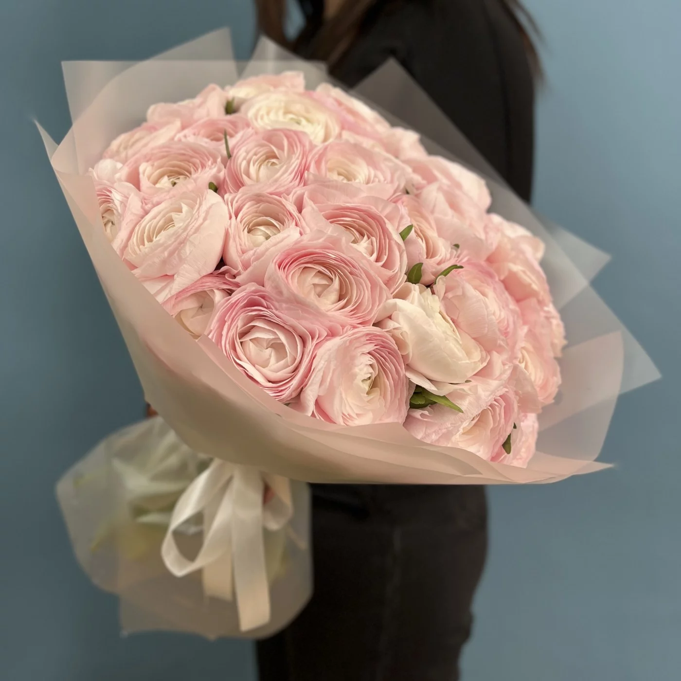 Букет из 35 розовых ранункулюсов — это великолепное цветочное произведение, которое станет настоящим украшением любого события.