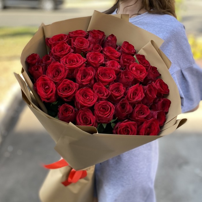 Букет из 41 красной розы высотой 70 см — это великолепная и выразительная композиция, которая станет идеальным подарком для самых значимых случаев.