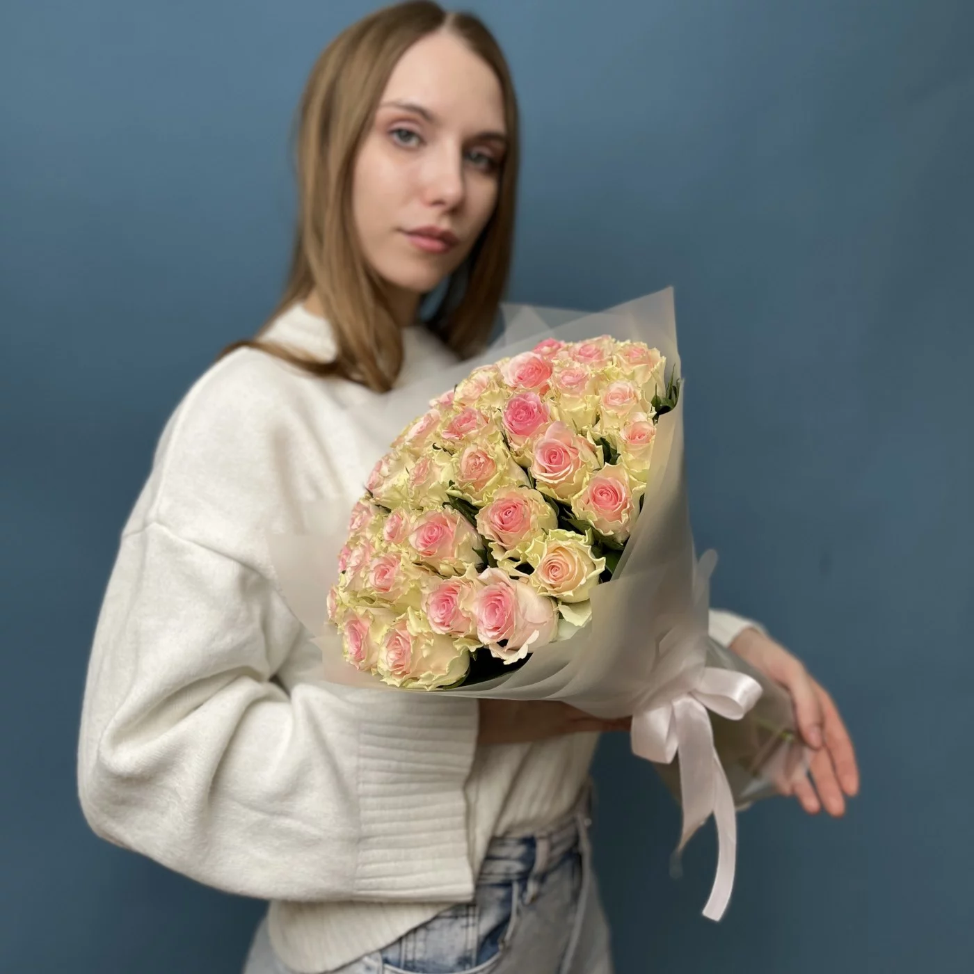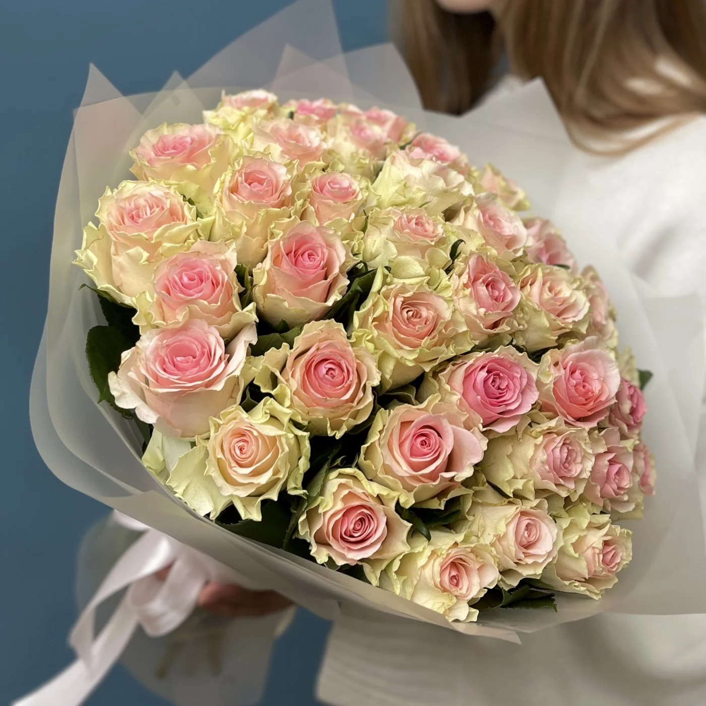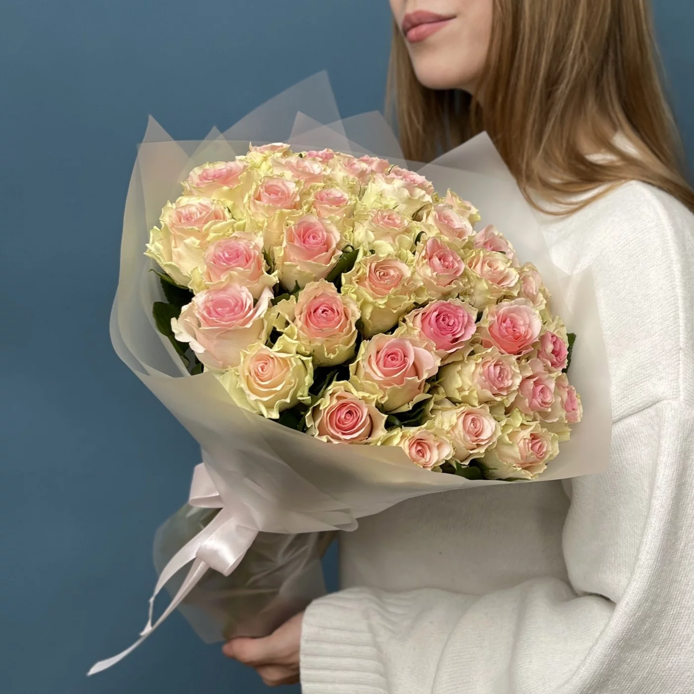 Букет из 41 нежно-розовjq розы сорта Топ Гир — это не просто цветы, а настоящее произведение искусства, которое способно передать ваши чувства и создать незабываемую атмосферу. Такой подарок обязательно произведет впечатление и станет символом вашей любви и заботы.