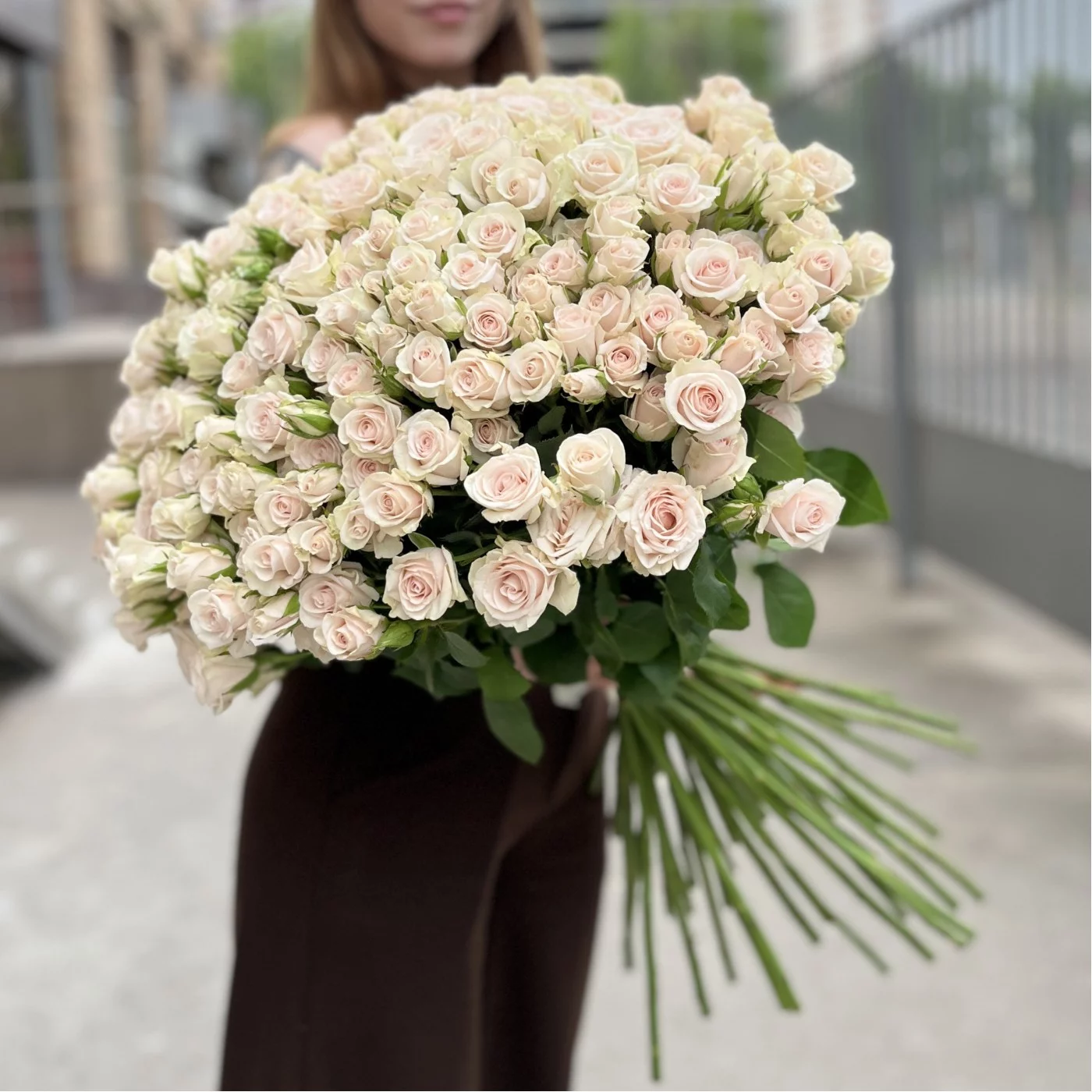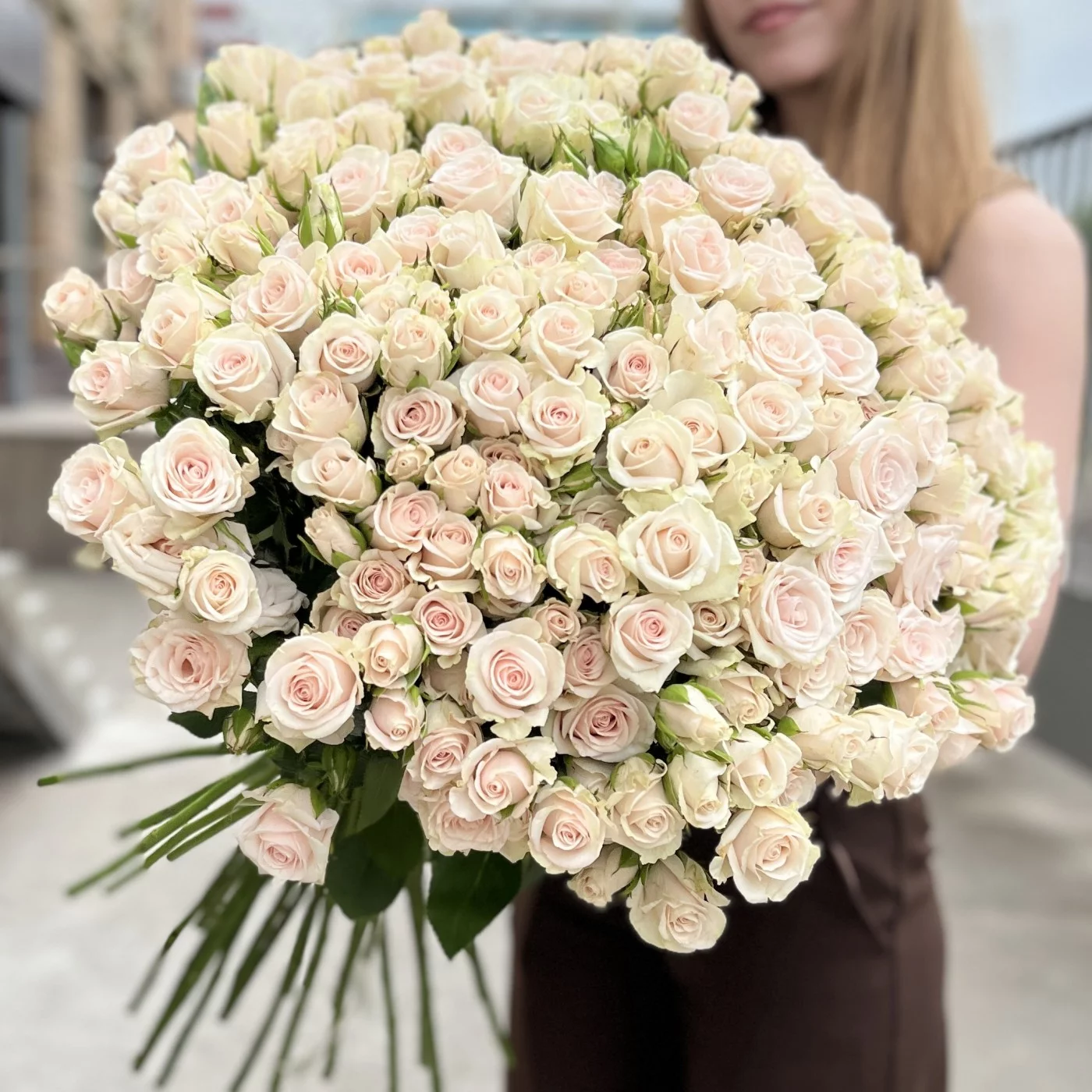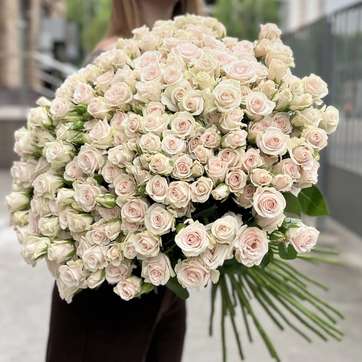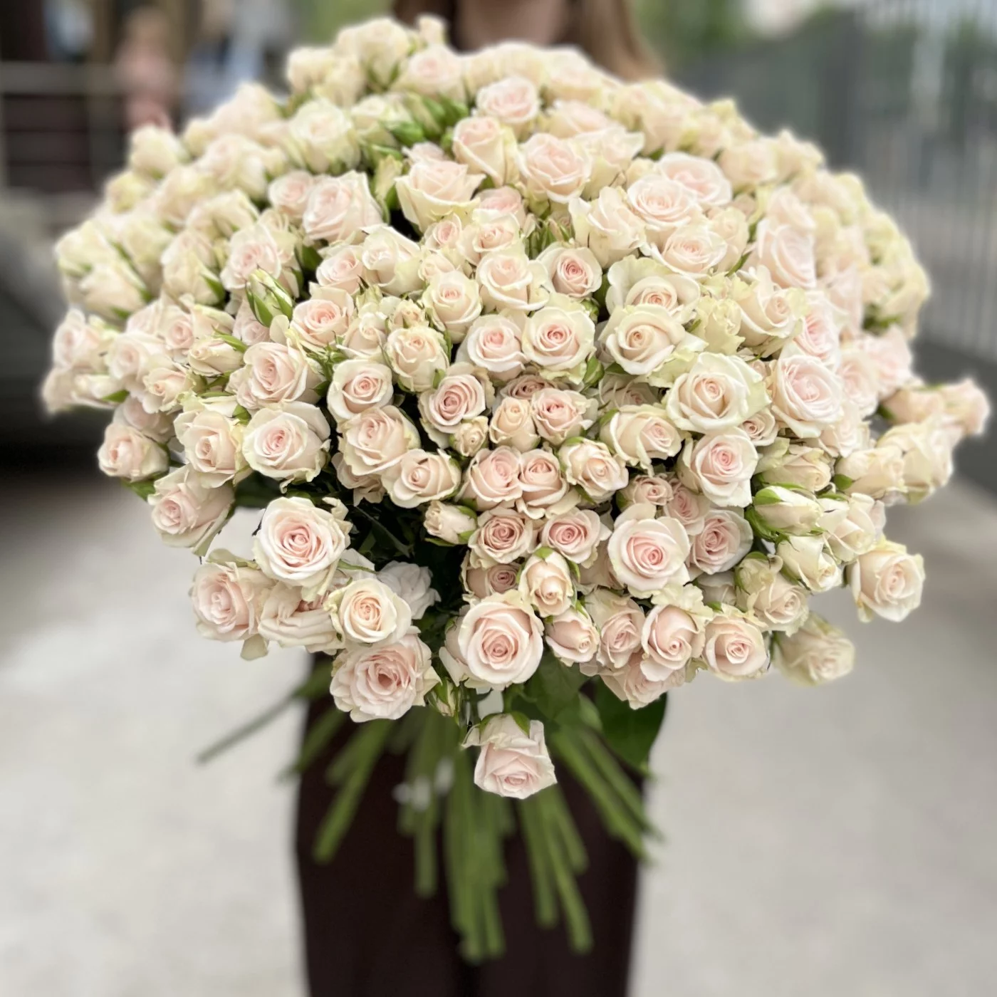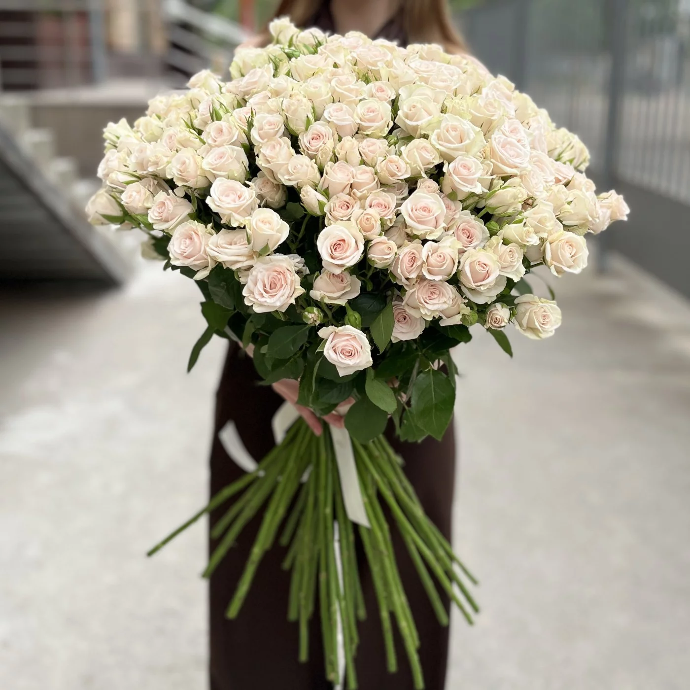 Букет из 45 кустовых роз Роял Порцелина — это изысканность и романтика. Нежные кремово-розовые бутоны смотрятся особенно пышно благодаря множеству цветков на каждом стебле. Эти розы подойдут для искреннего признания, тёплого поздравления или просто как знак внимания. Эффектный и душевный подарок на любой случай.