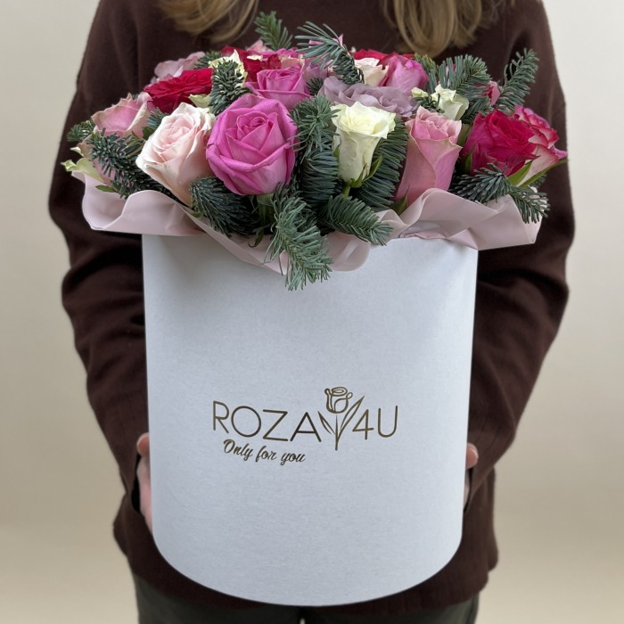 Теги: Зимние букеты Кому Любимой Маме Новый Год Одноголовые розы Повод Розы в круглой коробке Торжество Универсальные Юбилей Букеты роз Цветы и букеты в коробке Композиции Букеты к праздникам Тип букета Яркие Состав