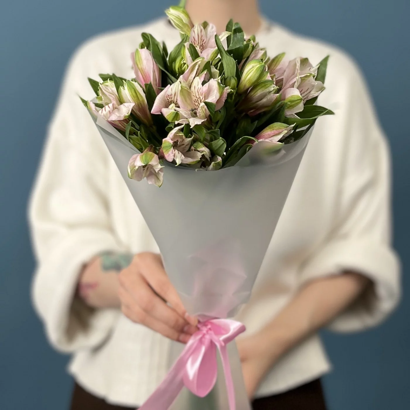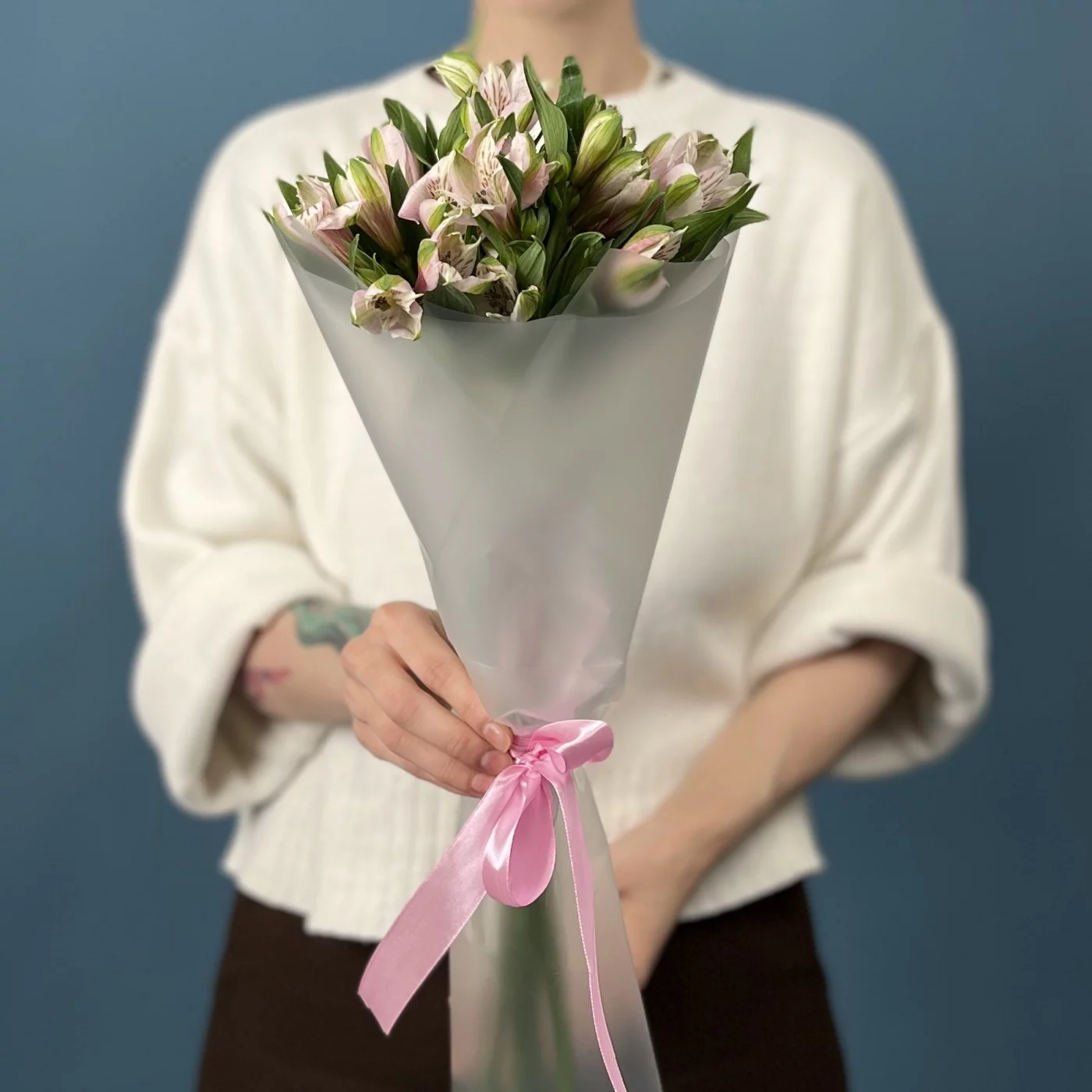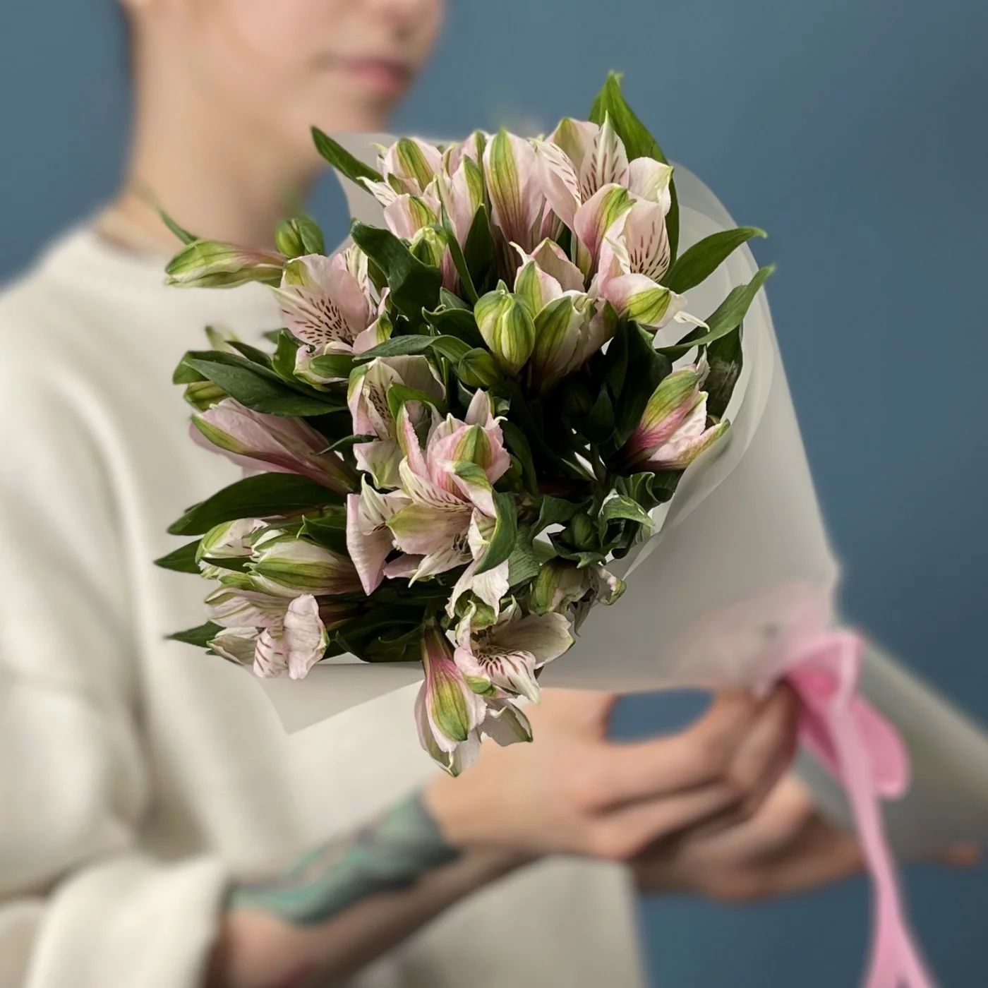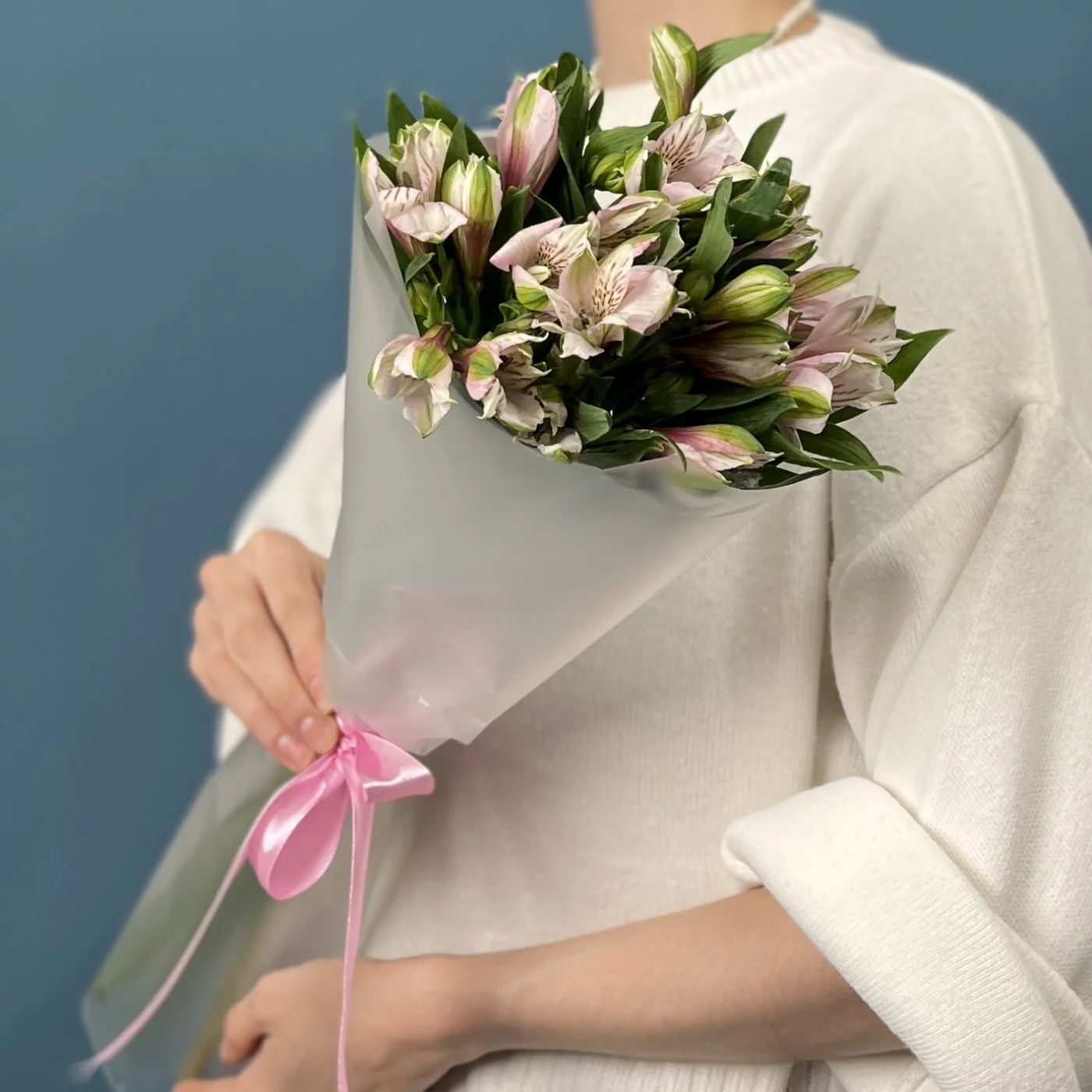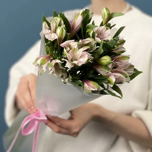 Букет из 5 бело-розовых альстромерий — нежный и свежий подарок, который передаст легкость, чистоту и тепло чувств.