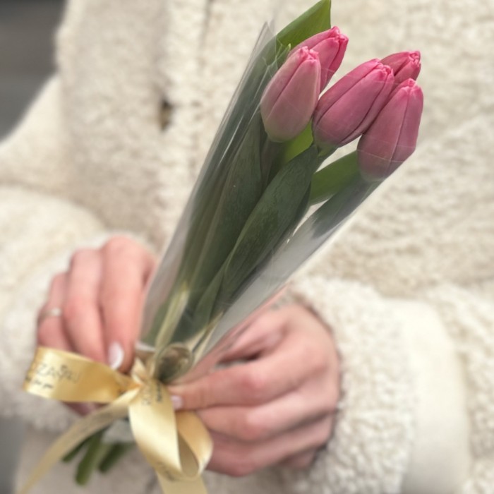 5 розовых тюльпанов Трезор