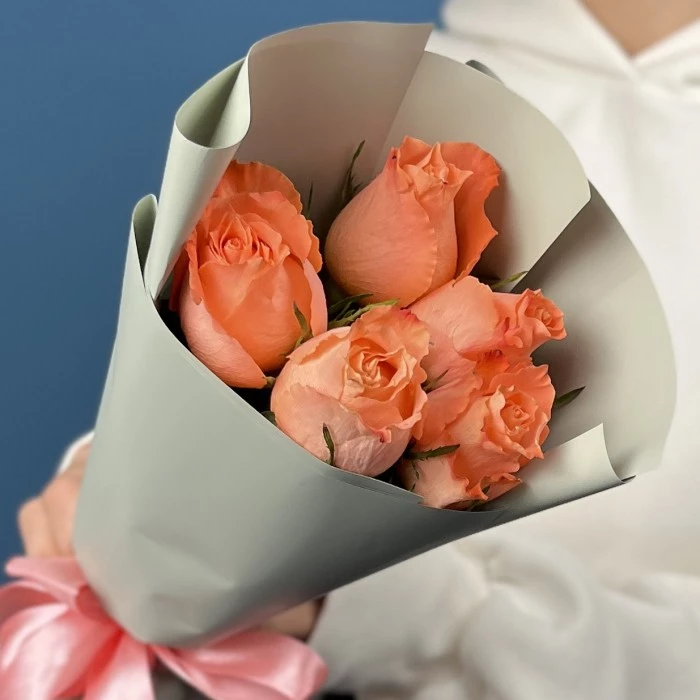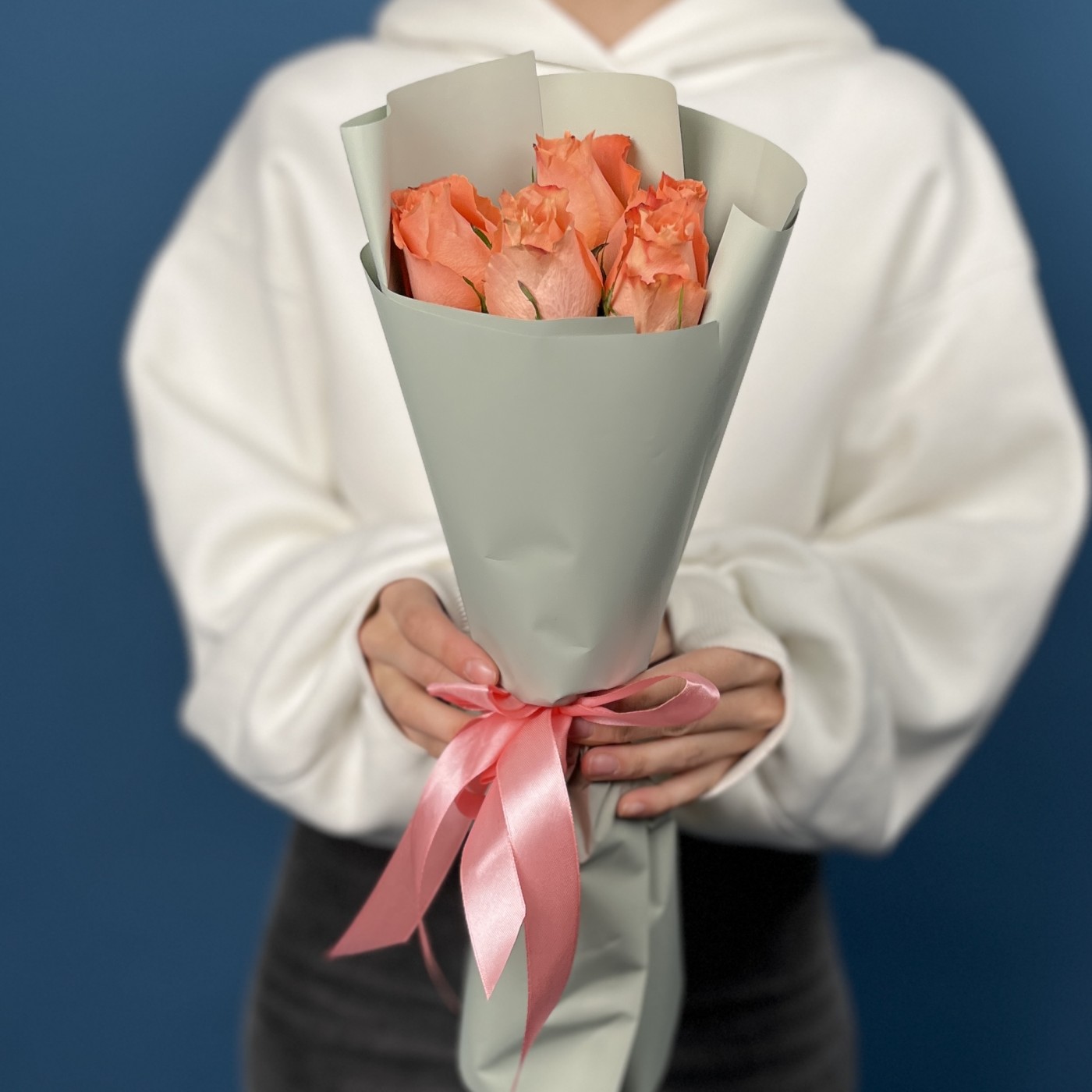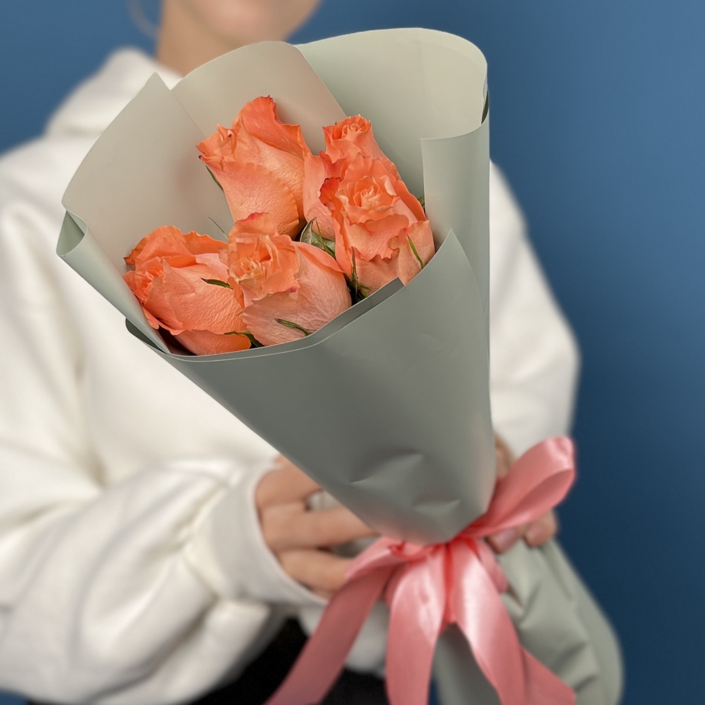 Нежный и элегантный букет из 5 коралловых роз сорта Юлечка с длиной стебля 40 см. Яркие и насыщенные оттенки создают романтичную и праздничную атмосферу. Идеальный подарок для выражения нежных чувств или украшения интерьера.