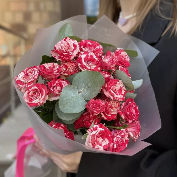 5 кустовых бело-малиновых роз Файрворкс 40 см — символ ярких эмоций и нежных чувств! Их контрастные оттенки создают гармоничную и живую композицию, которая способна украсить любой момент. Каждая роза в этом букете олицетворяет радость и восхищение, наполняя пространство атмосферой тепла и счастья. Подарите этот букет, и он станет прекрасным выражением ваших чувств, даря улыбки и положительные эмоции.
