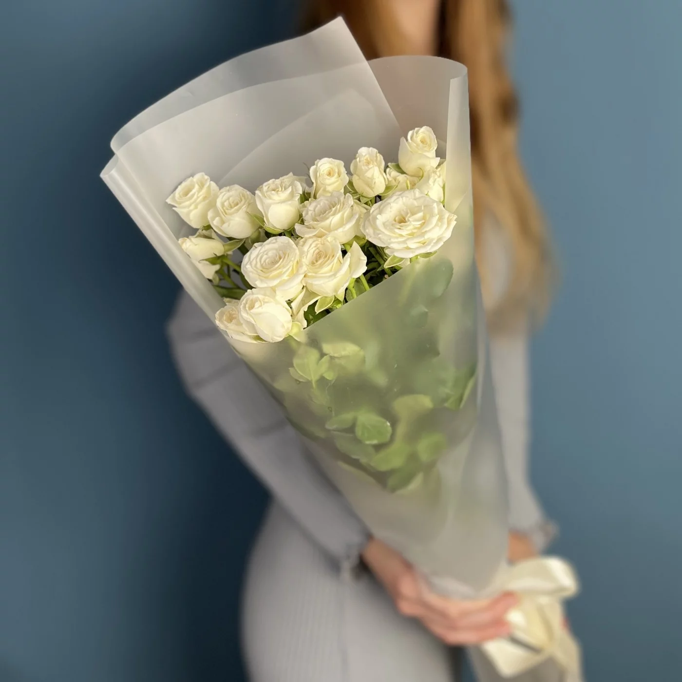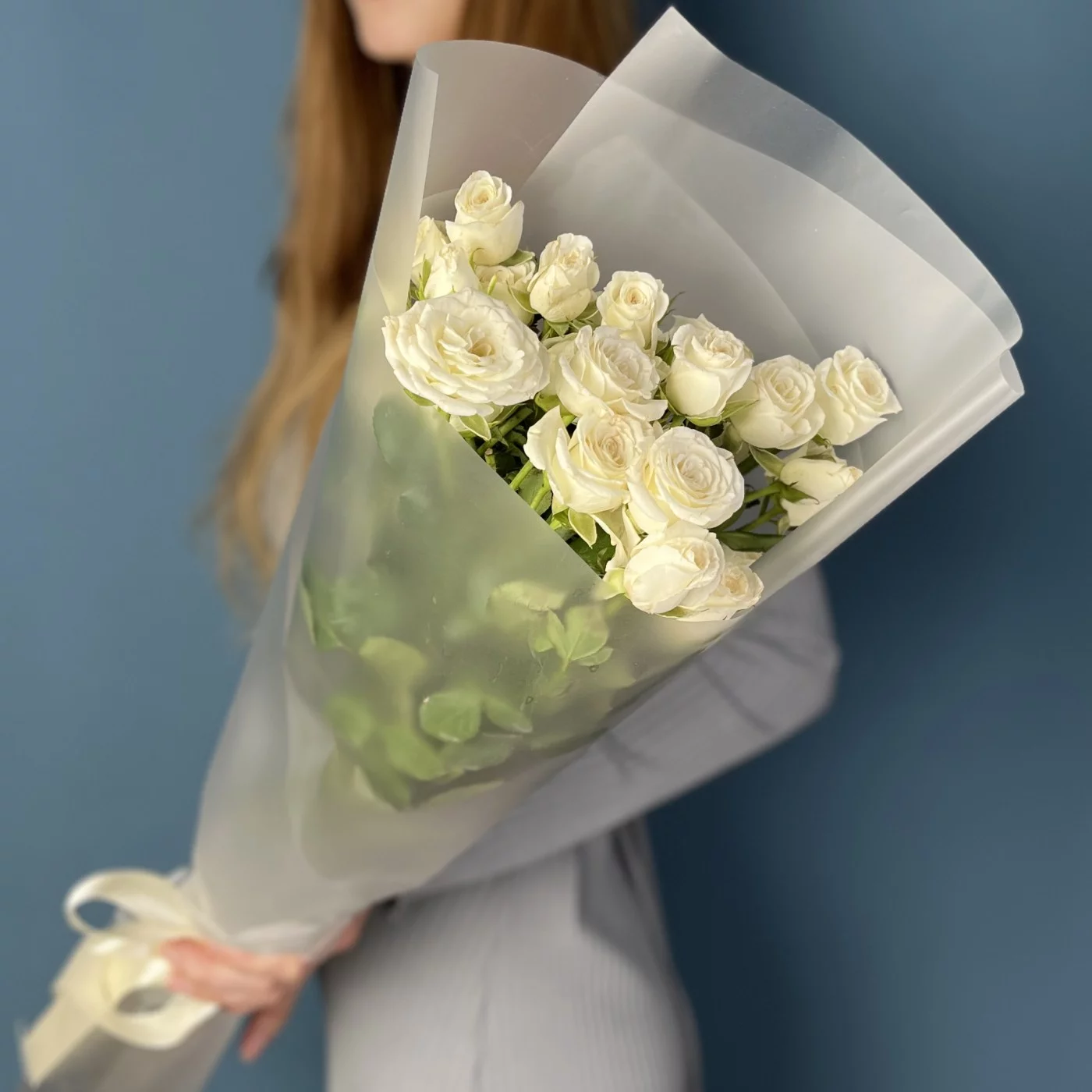 5 кустовых белых роз Сноуфлейк 60 см