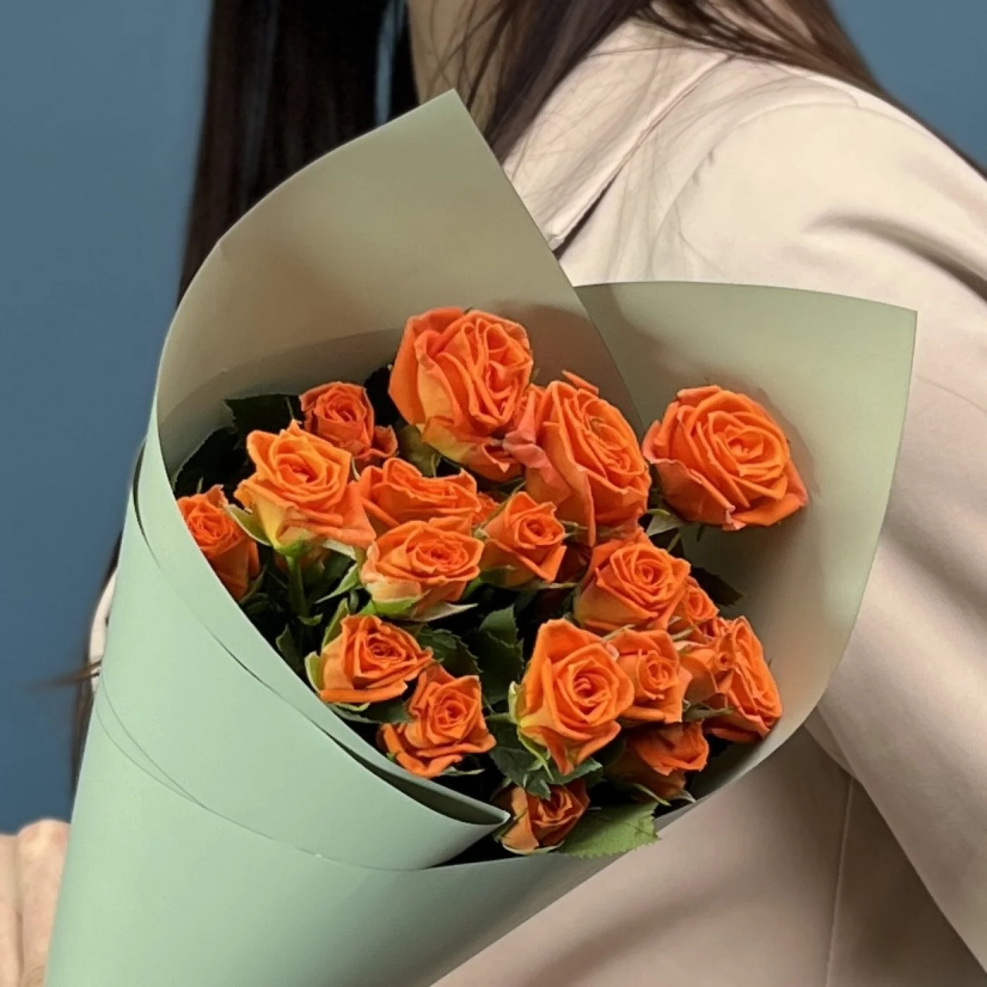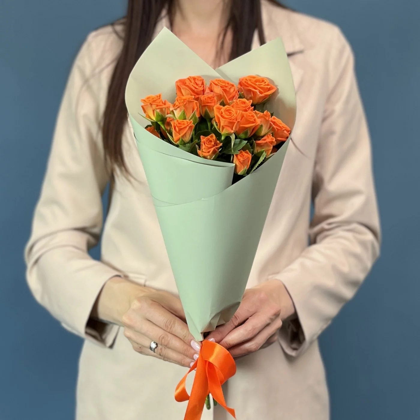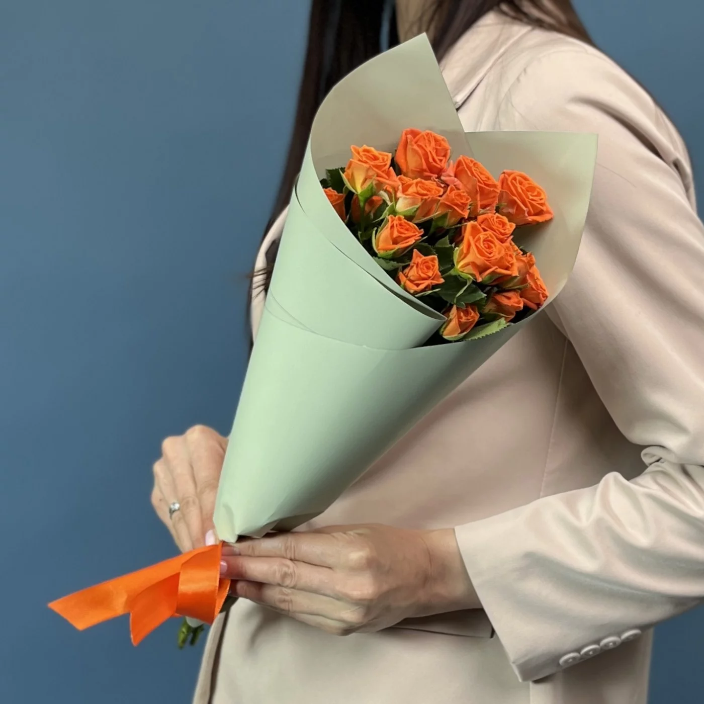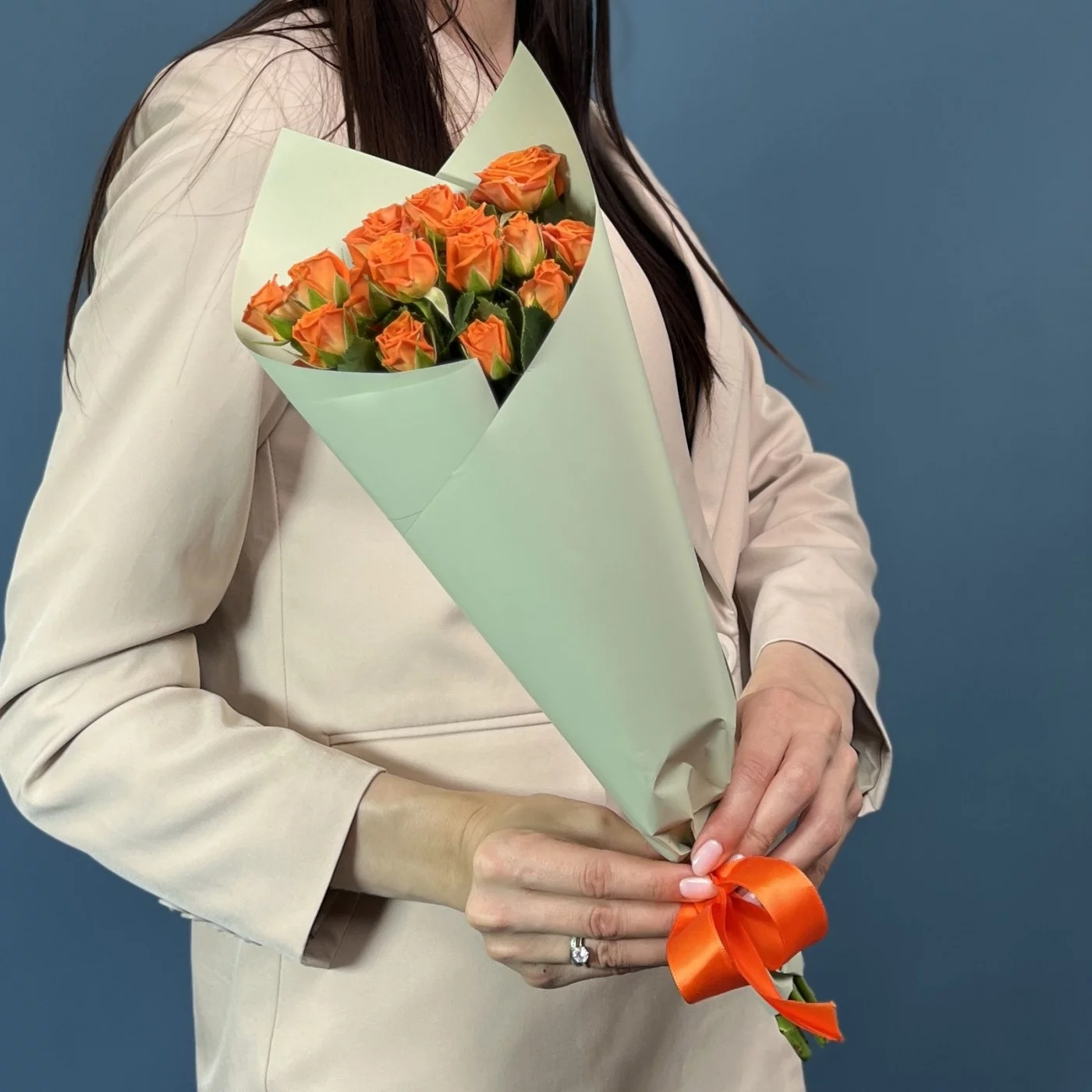 5 кустовых оранжевых роз Чарминг Бейб 40 см