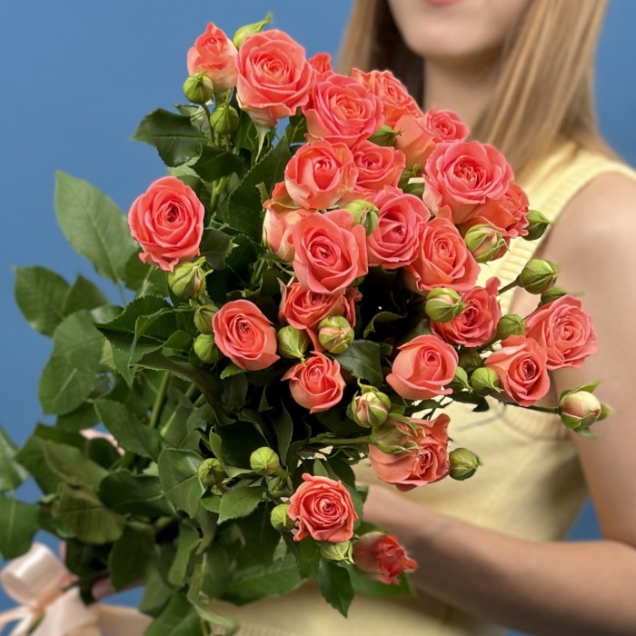 5 кустовых оранжевых роз Чарминг Бейб 80 см — идеальный выбор для тех, кто ценит натуральную красоту и лёгкую романтику.