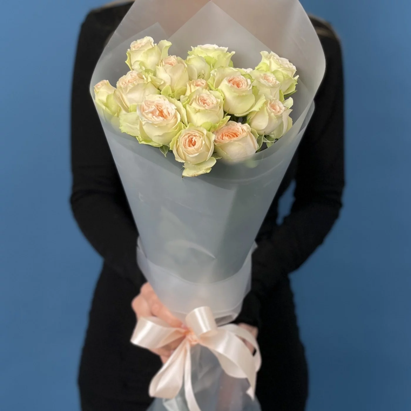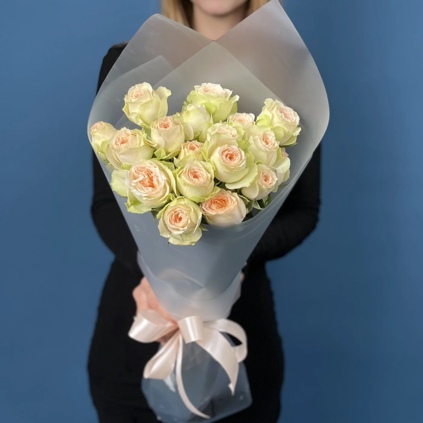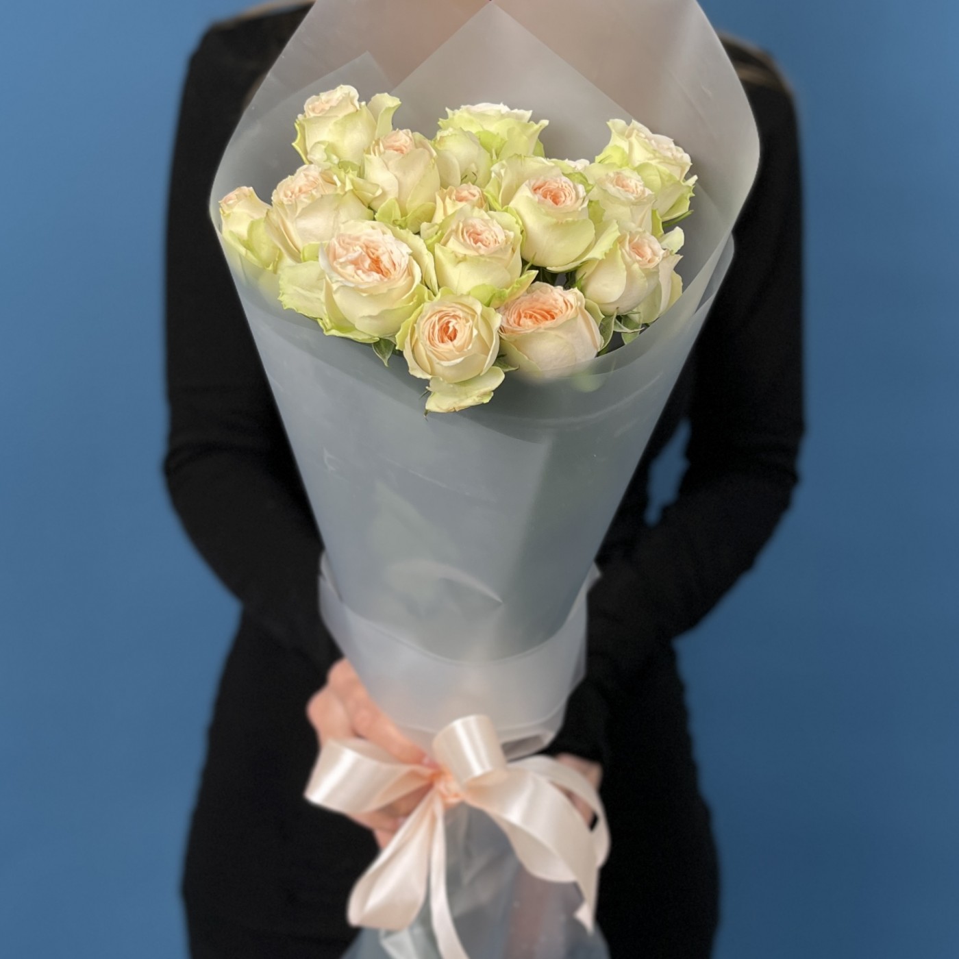 5 кустовых персиково-зелёных роз Павлова 50 см
