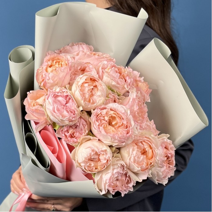 Нежный букет из 5 кустовых пионовидных роз сорта Джульетта Хани высотой 60 см. Эти розы отличаются пышным кустистым видом и теплым цветом, создавая атмосферу уюта и элегантности. Идеальный выбор для подарка, сочетающего натуральную красоту и изысканность.