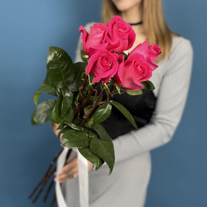 Букет из пяти малиновых роз Пинк Флойд высотой 70 см впечатляет насыщенностью оттенка и благородством формы. Крупные бутоны с густыми лепестками выглядят торжественно и выразительно, а их насыщенный малиновый цвет создаёт ощущение силы, тепла и особенного внимания. Композиция кажется совершенной благодаря идеальным пропорциям и естественной гармонии, которая приносит радость и сразу подчёркивает значимость момента. Преимущество такого букета в его эффектности при минимализме: всего несколько роскошных роз способны заменить целую композицию и передать самые глубокие эмоции. Он идеально подойдёт для признания, поздравления на важную дату, поддержки или подарка человеку, которого хочется по-настоящему впечатлить. Наша