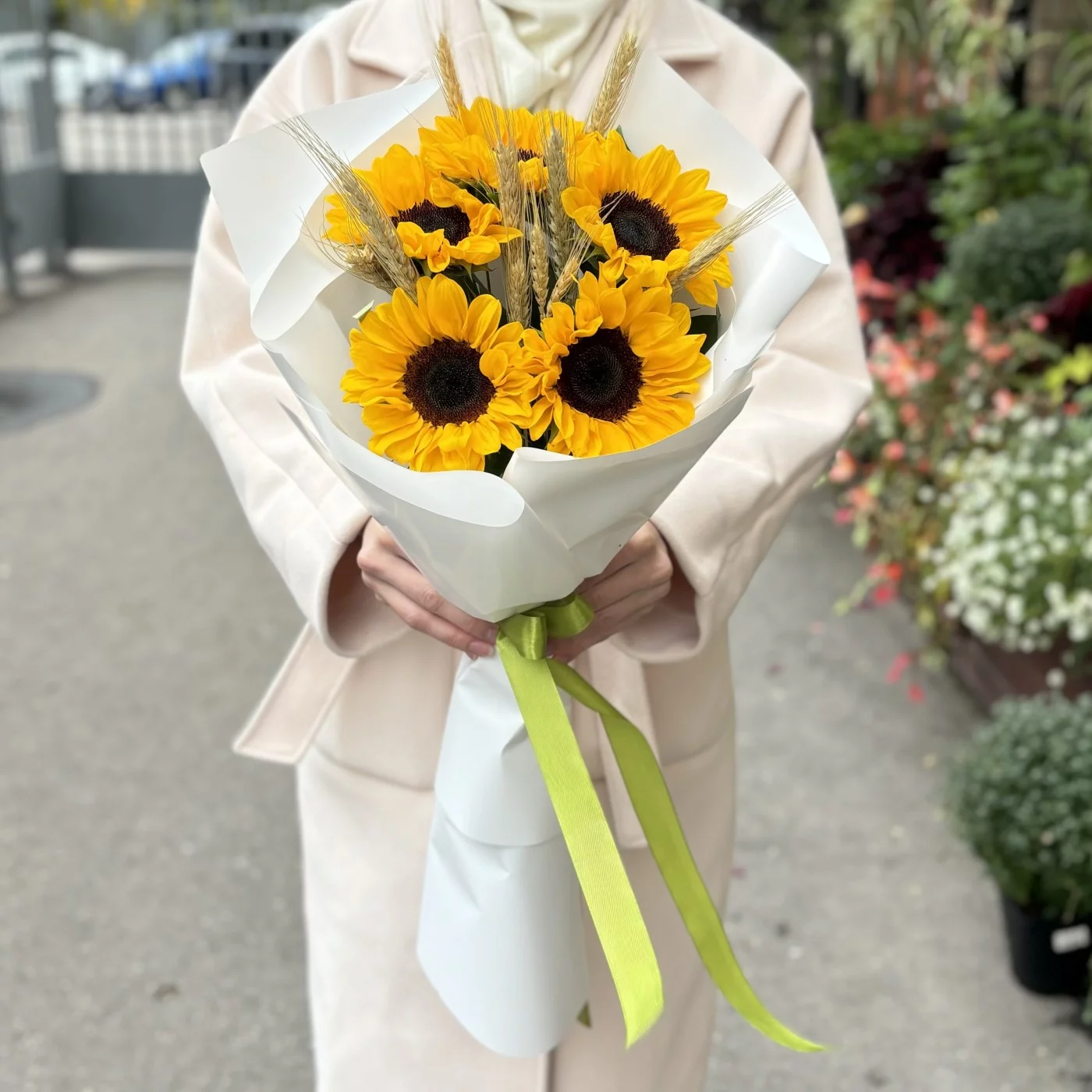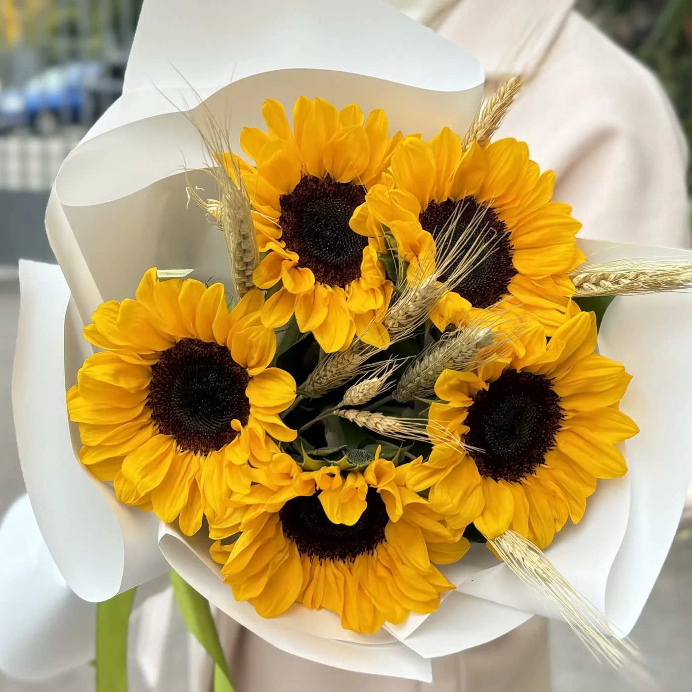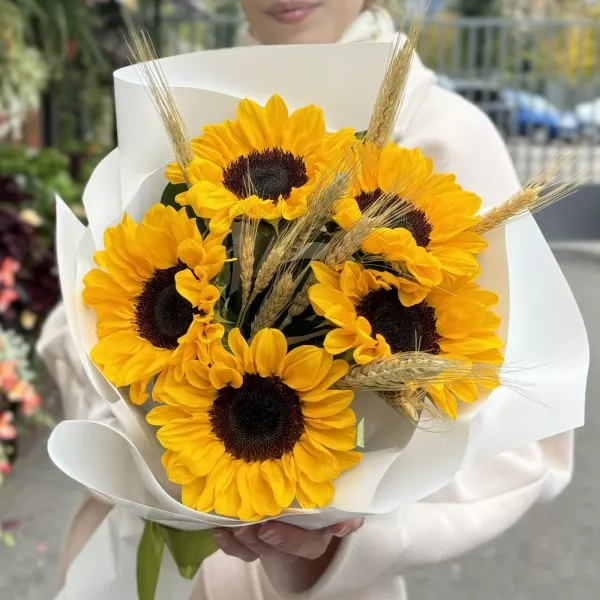 5 подсолнухов с колосьями пшеницы