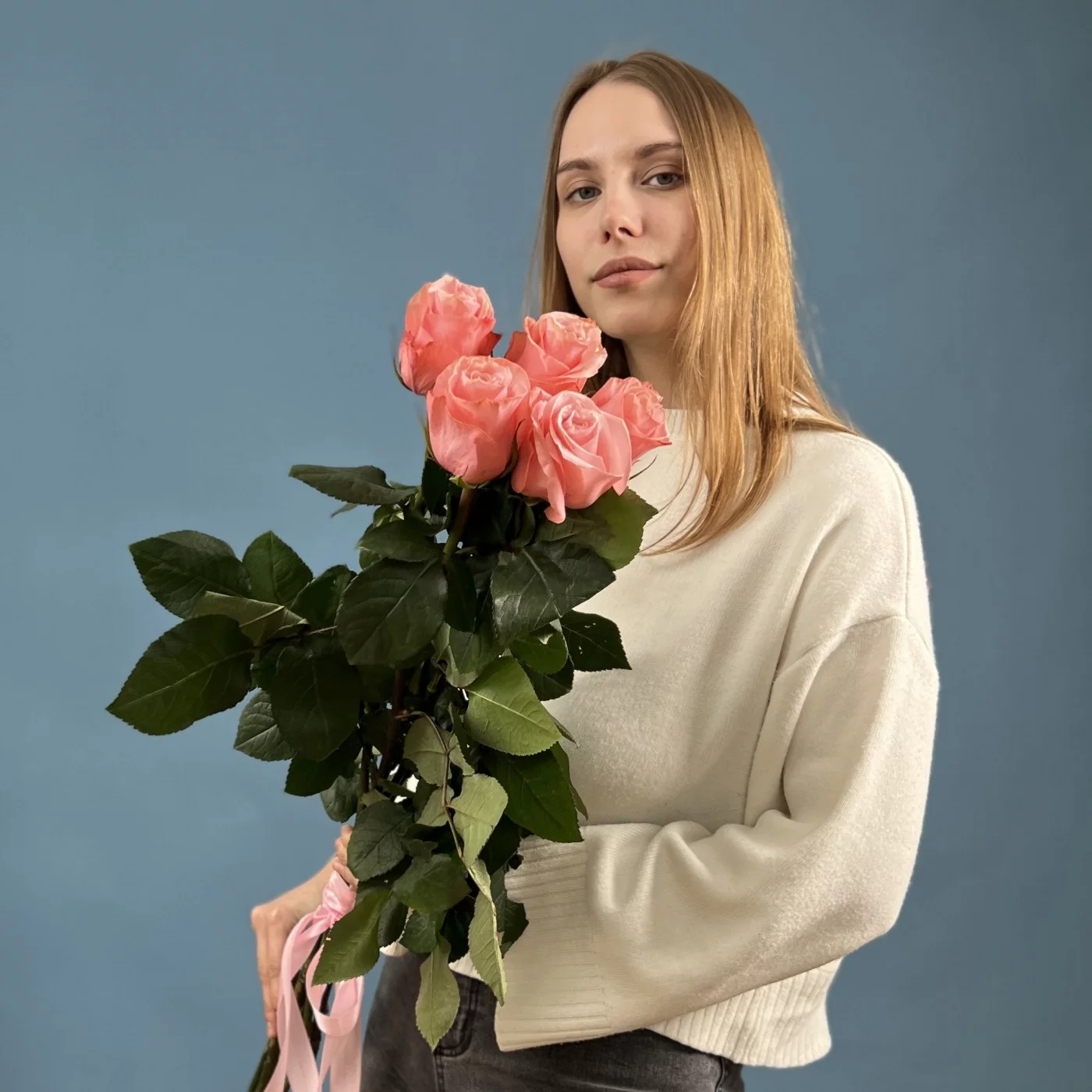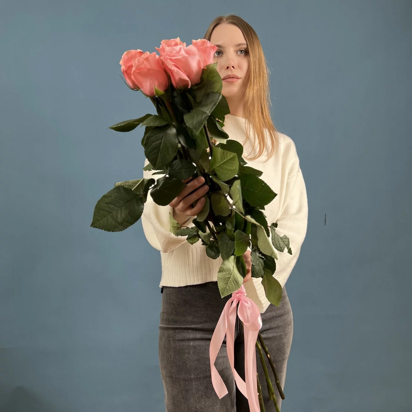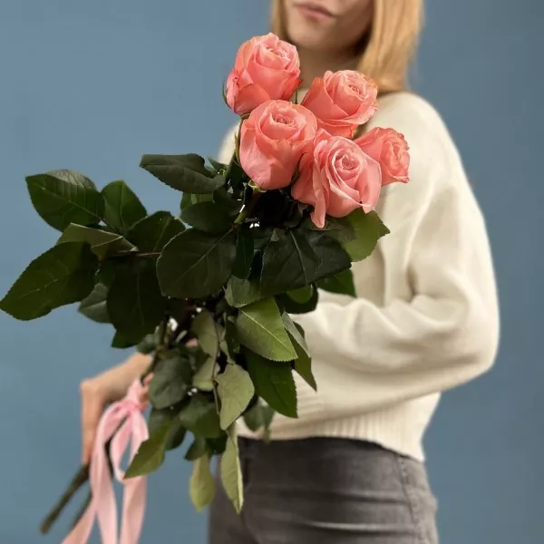 Букет из 5 длинных розовых роз сорта Би Свит высотой 70 см – это идеальный способ выразить свои чувства и продемонстрировать внимание к важному человеку.