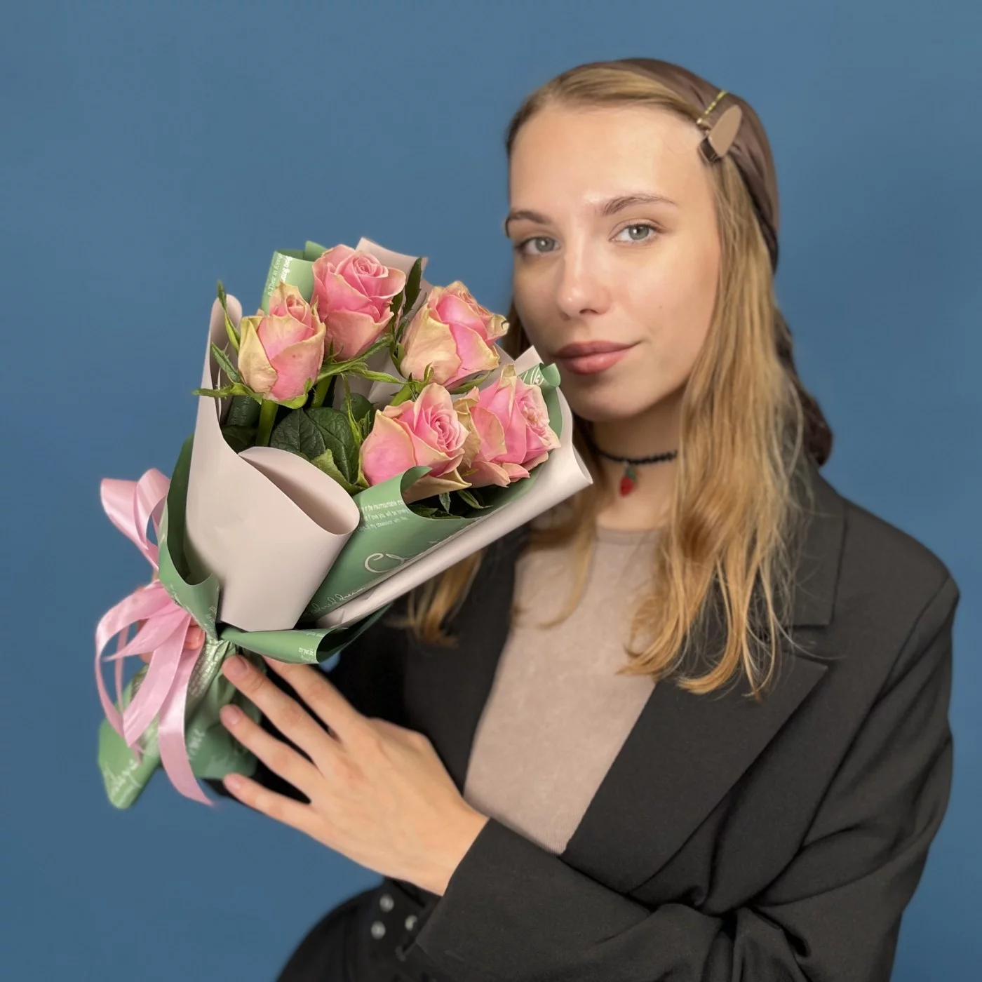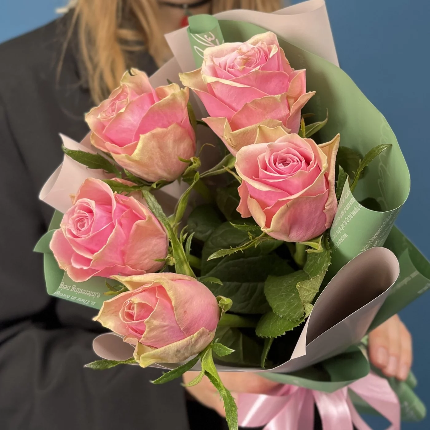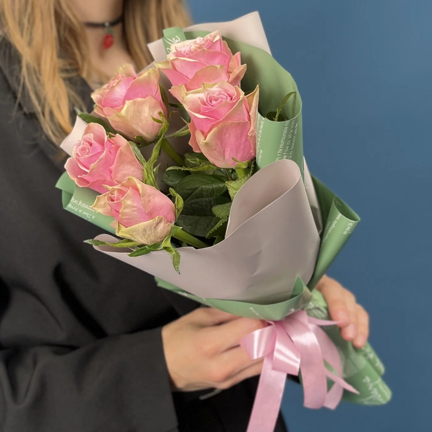 5 розовых роз Роял Атена 40 см — это изысканный и романтичный подарок, который идеально подходит для различных поводов.