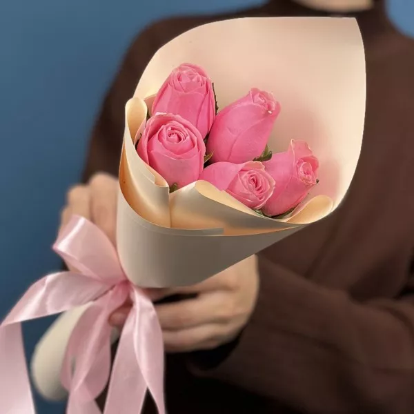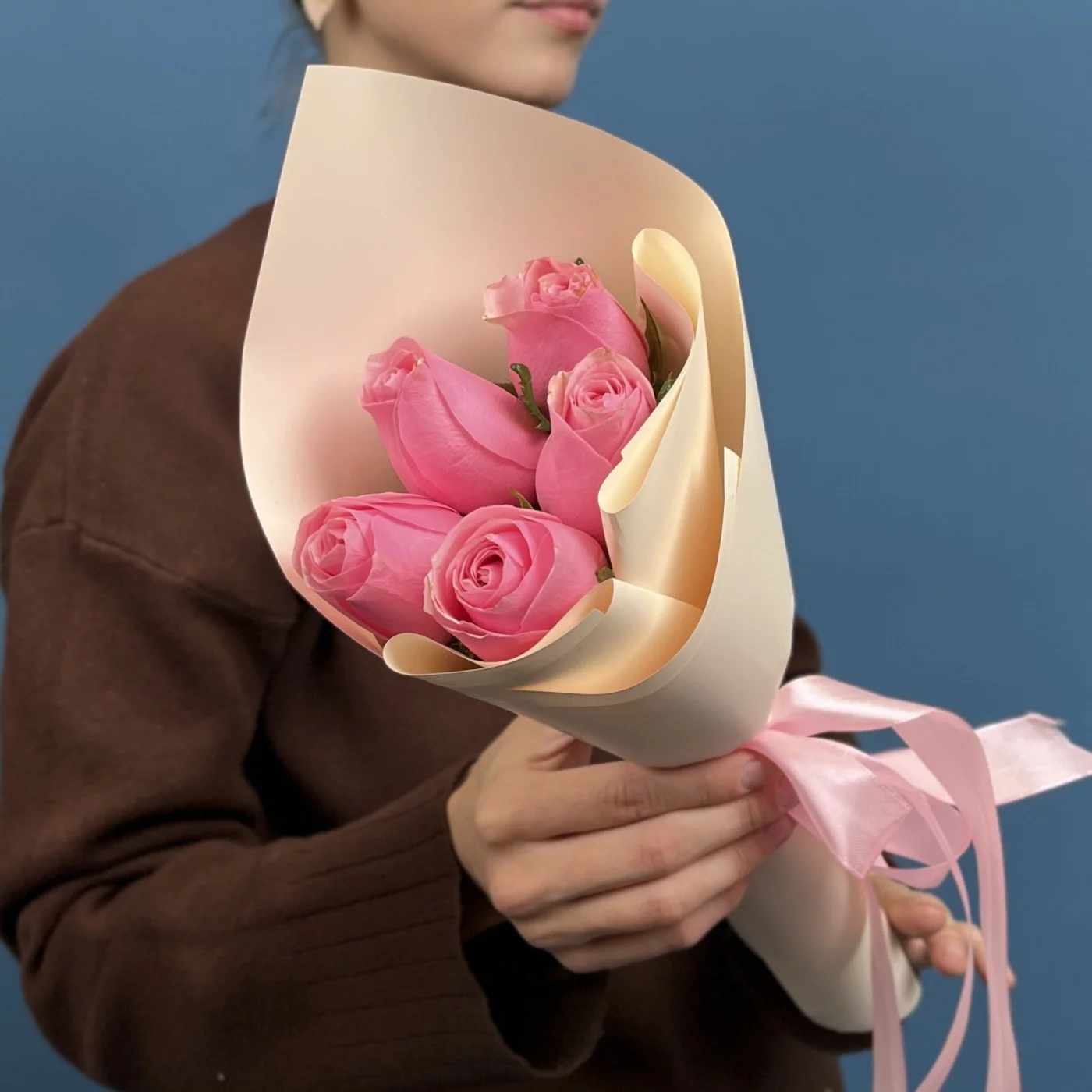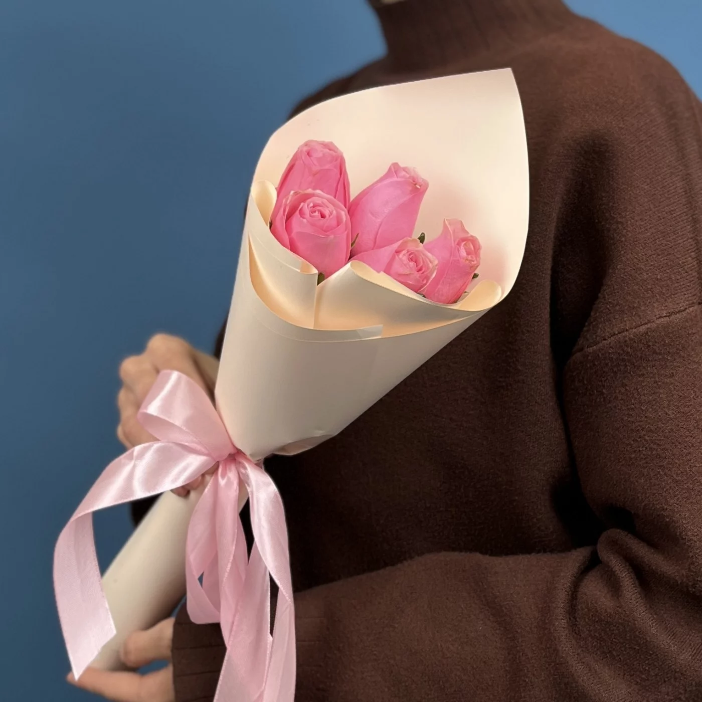 Теги: 5 роз Кому Корпоративные букеты Корпоративным клиентам Круглые букеты Одноголовые розы Повод Универсальные Форма Букеты роз Тип букета Яркие Состав