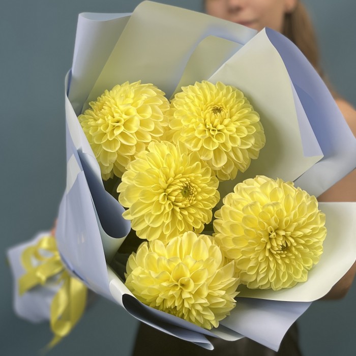 5 желтых Георгин помпон — это настоящее воплощение радости и свежести.