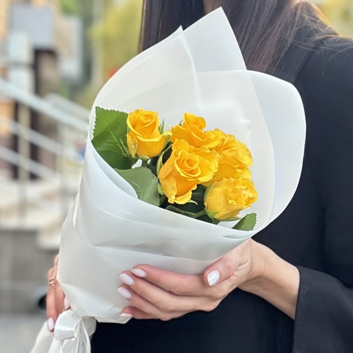 5 желтых роз 40 см