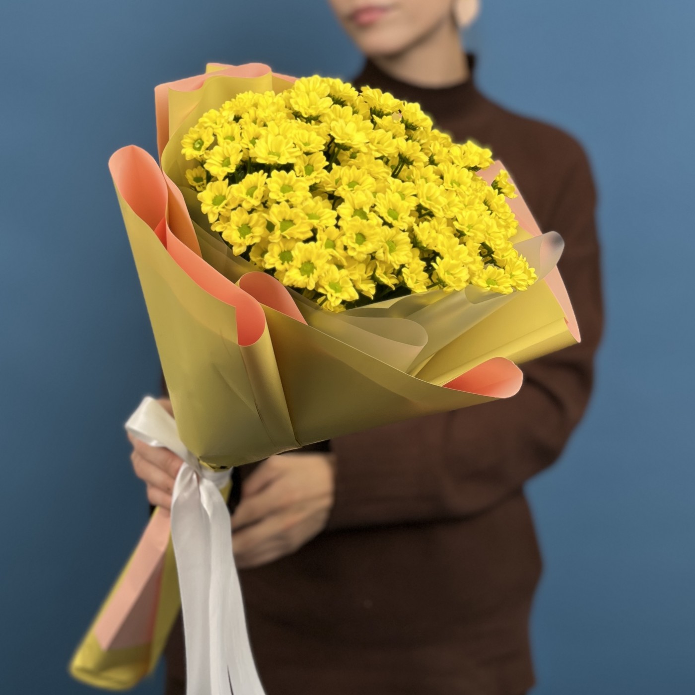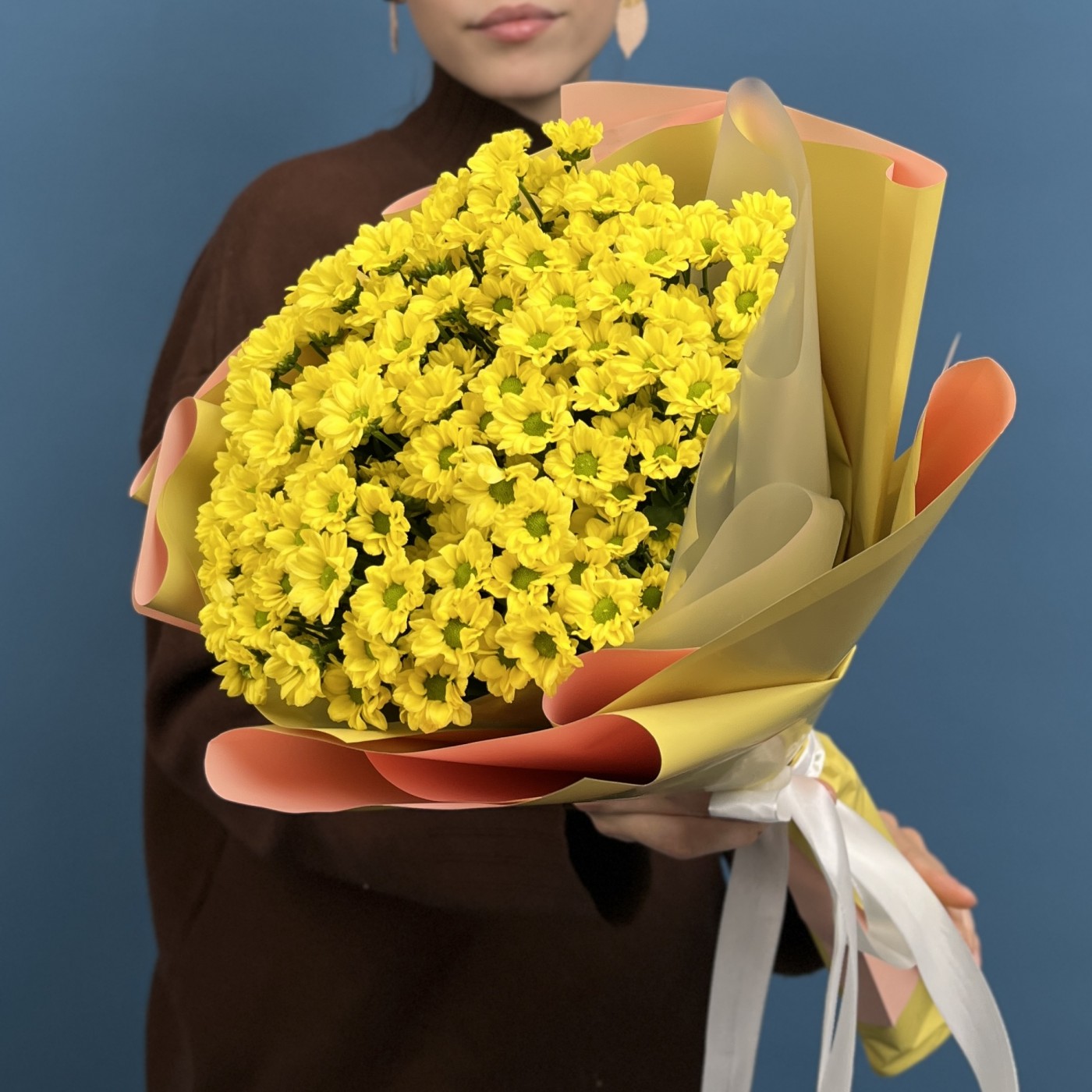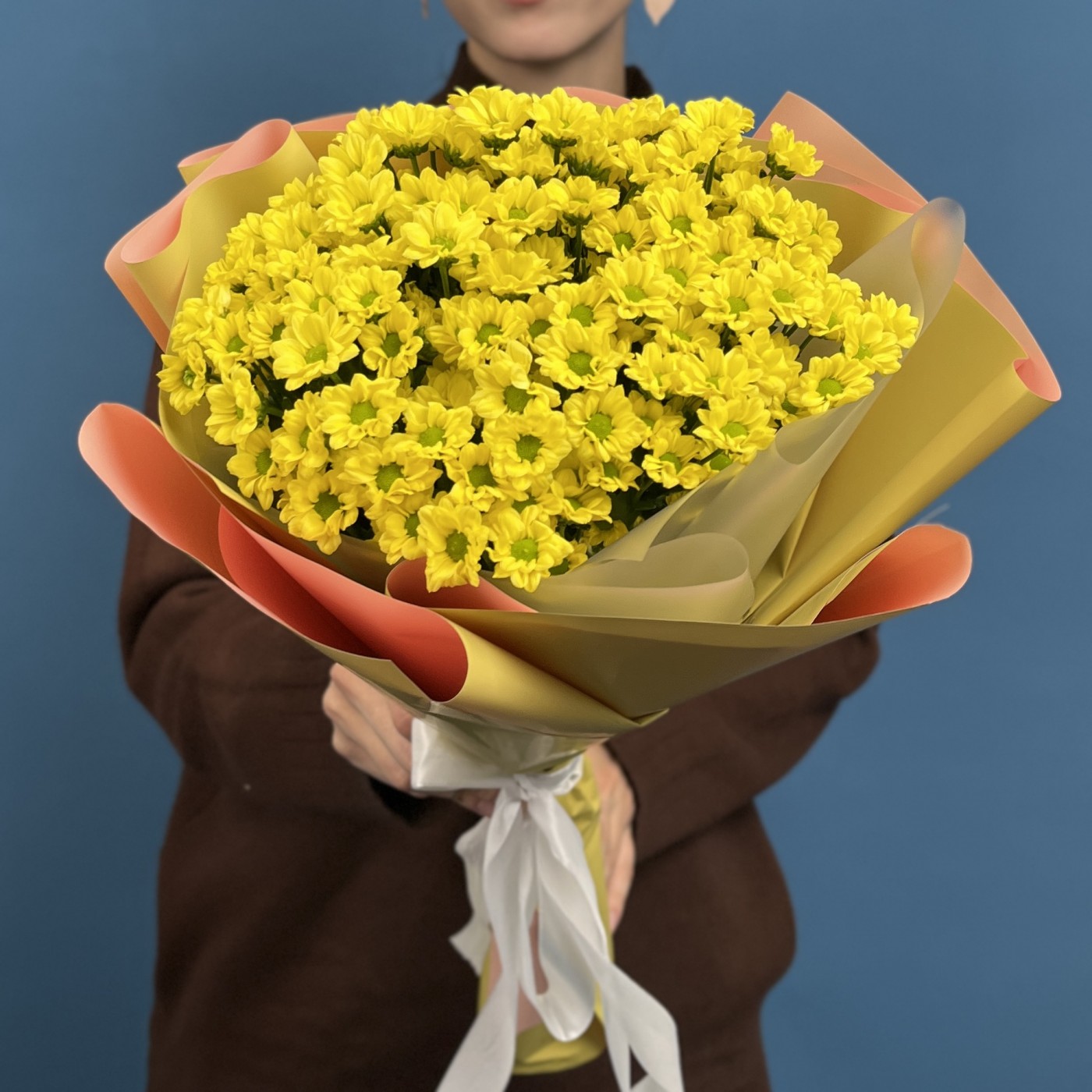 Букет из пяти жёлтых кустовых хризантем Сантини, аккуратно размещённых в стильной корзине, — это солнечное воплощение радости и жизнелюбия. Яркие соцветия переливаются золотистыми оттенками, создавая ощущение тепла и света, словно частичка лета заключена в каждой хризантеме. Корзина придаёт композиции утончённость и завершённость, делая её по-настоящему изысканным подарком. Такой букет выглядит гармонично и живо, излучая позитив и наполняя пространство добротой и энергией. Он идеально подойдёт для подарка любимым, друзьям, коллегам или родным — чтобы выразить благодарность, внимание и тёплые чувства. Композиция уместна в любой день, ведь её сияние поднимает настроение и делает момент особенным. Мы осуществляем доставку по Москве и области круглосуточно, гарантируем свежесть и отличное качество цветов. Наши клиенты отмечают лучшие цены и всегда оставляют отличные отзывы о нас во всех поисковиках — ведь радость, подаренная с любовью, всегда прекрасна.