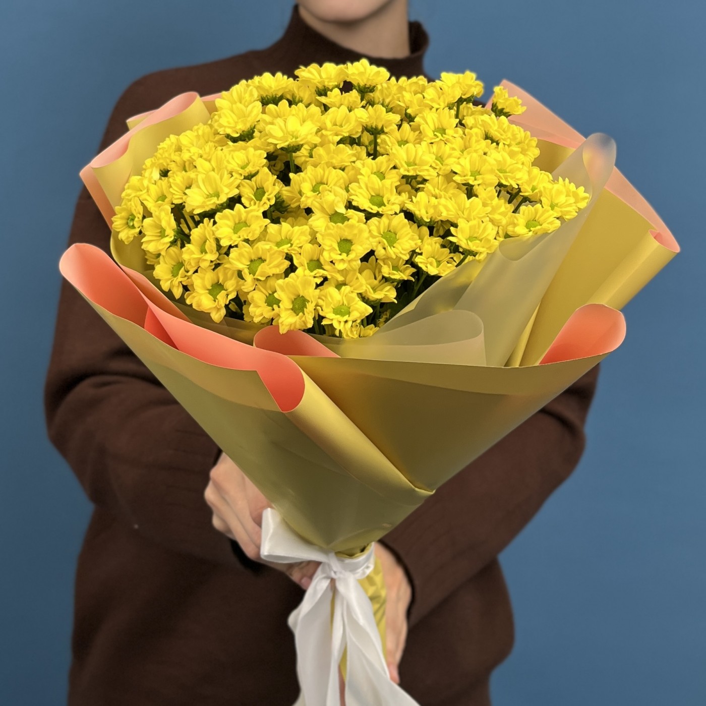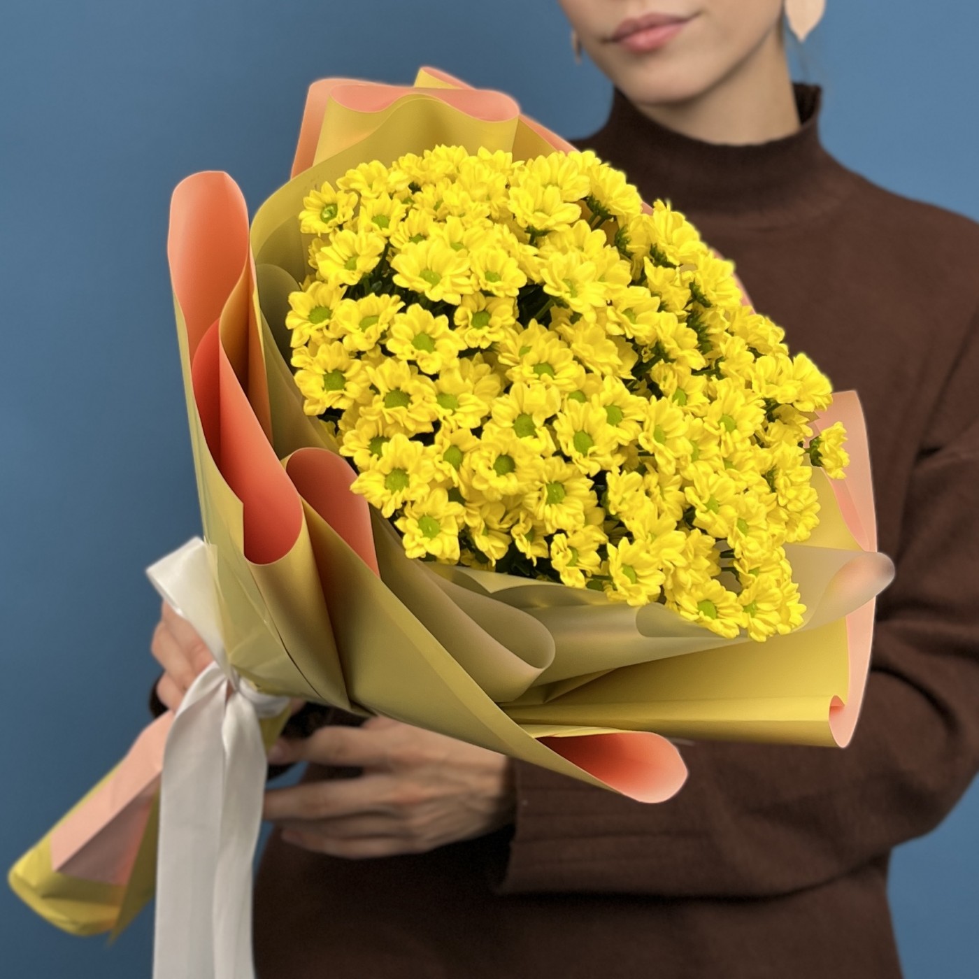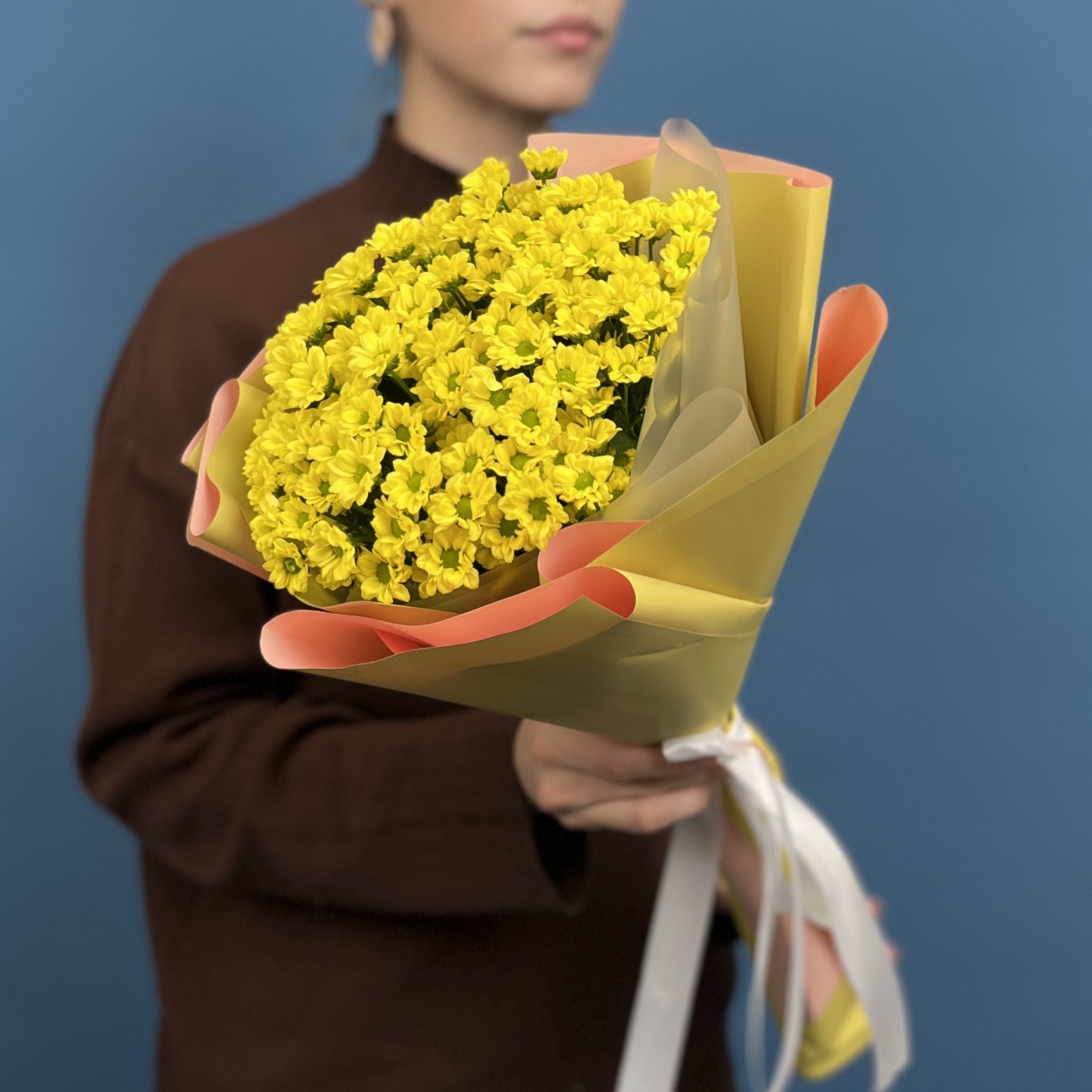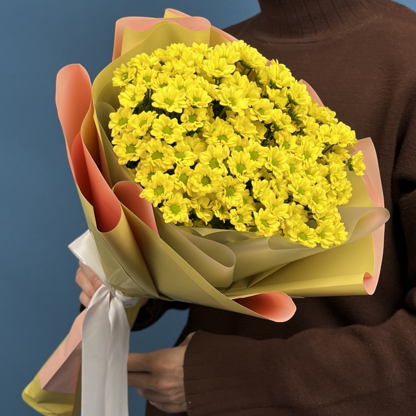 Букет из пяти жёлтых кустовых хризантем Сантини, аккуратно размещённых в стильной корзине, — это солнечное воплощение радости и жизнелюбия. Яркие соцветия переливаются золотистыми оттенками, создавая ощущение тепла и света, словно частичка лета заключена в каждой хризантеме. Корзина придаёт композиции утончённость и завершённость, делая её по-настоящему изысканным подарком. Такой букет выглядит гармонично и живо, излучая позитив и наполняя пространство добротой и энергией. Он идеально подойдёт для подарка любимым, друзьям, коллегам или родным — чтобы выразить благодарность, внимание и тёплые чувства. Композиция уместна в любой день, ведь её сияние поднимает настроение и делает момент особенным. Мы осуществляем доставку по Москве и области круглосуточно, гарантируем свежесть и отличное качество цветов. Наши клиенты отмечают лучшие цены и всегда оставляют отличные отзывы о нас во всех поисковиках — ведь радость, подаренная с любовью, всегда прекрасна.