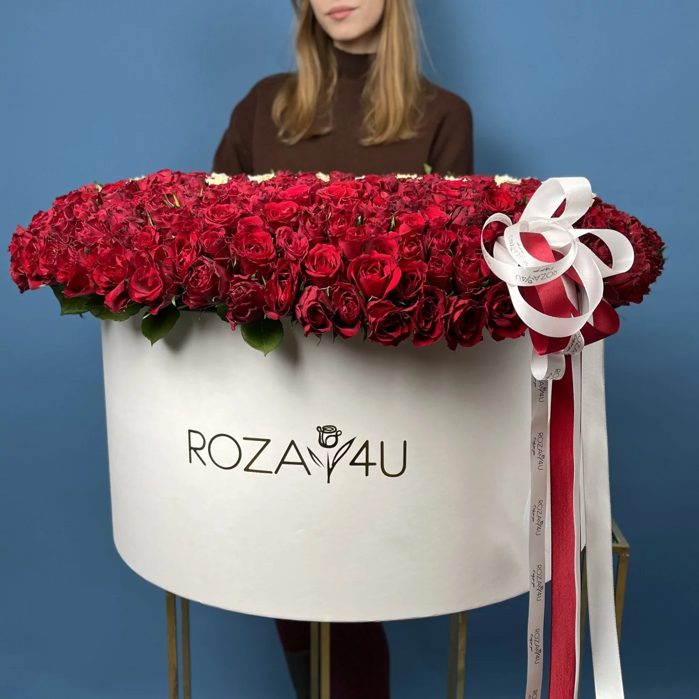 Множество свежих, идеально подобранных роз создают впечатляющий объём и захватывающее визуальное сияние, а фирменная коробка делает композицию утончённой, удобной для вручения и незабываемой.