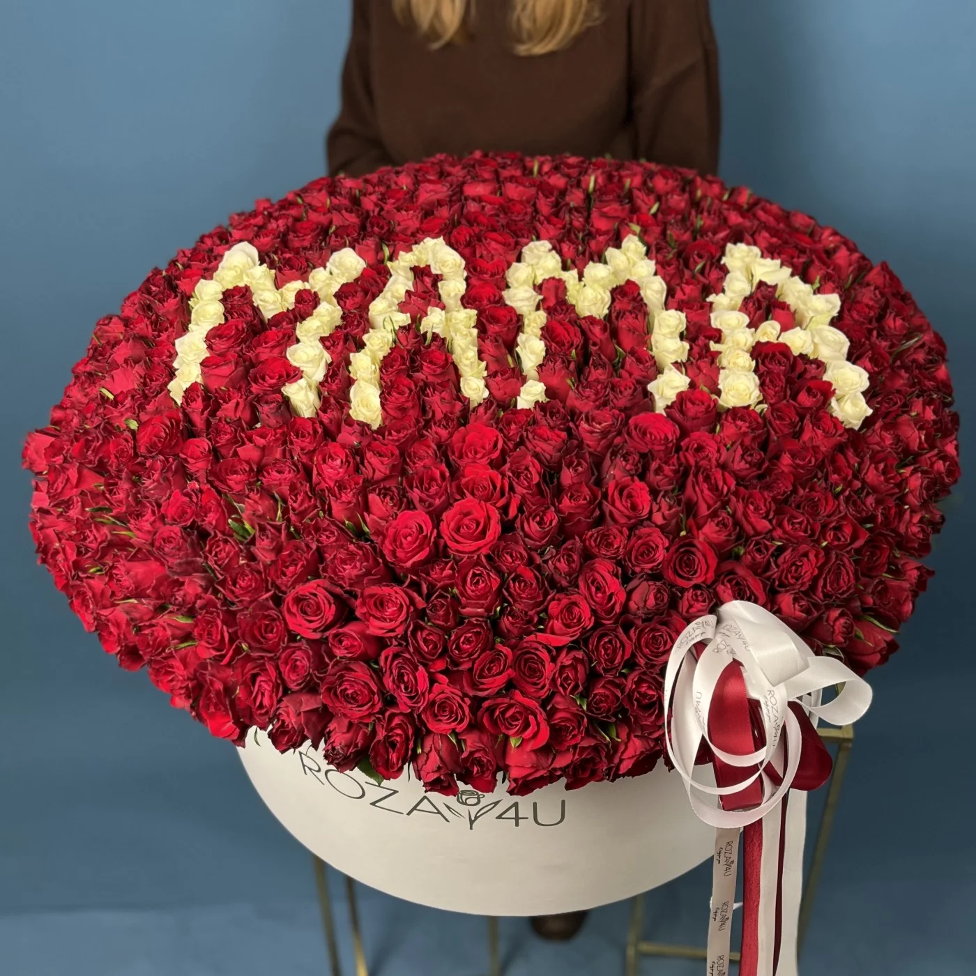 Великолепный и по-настоящему роскошный подарок — это 501 роза, изящно собранная в большой декоративной коробке с тёплой надписью «Мама». Такое оформление подчёркивает масштаб любви и благодарности, превращая букет в настоящее произведение искусства.