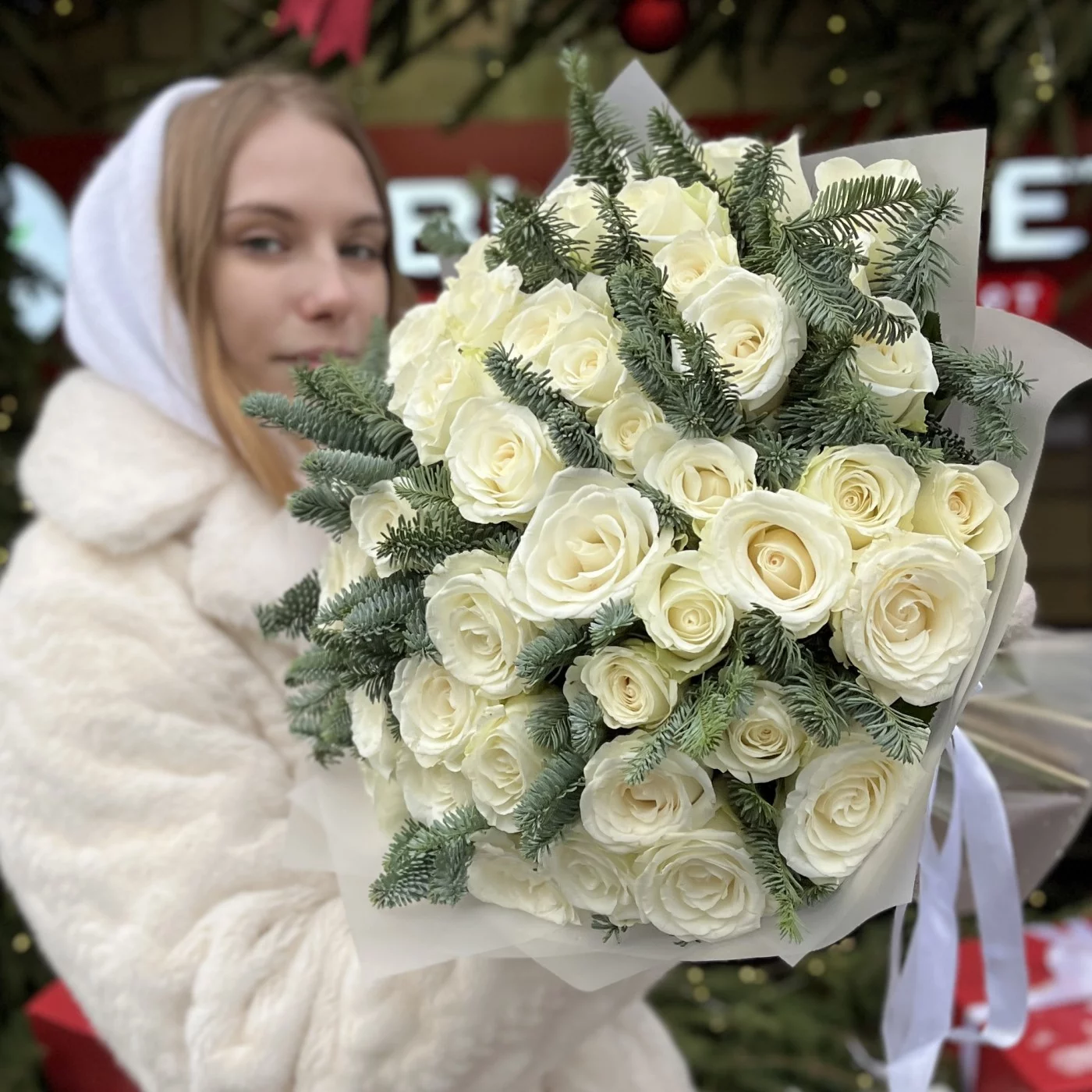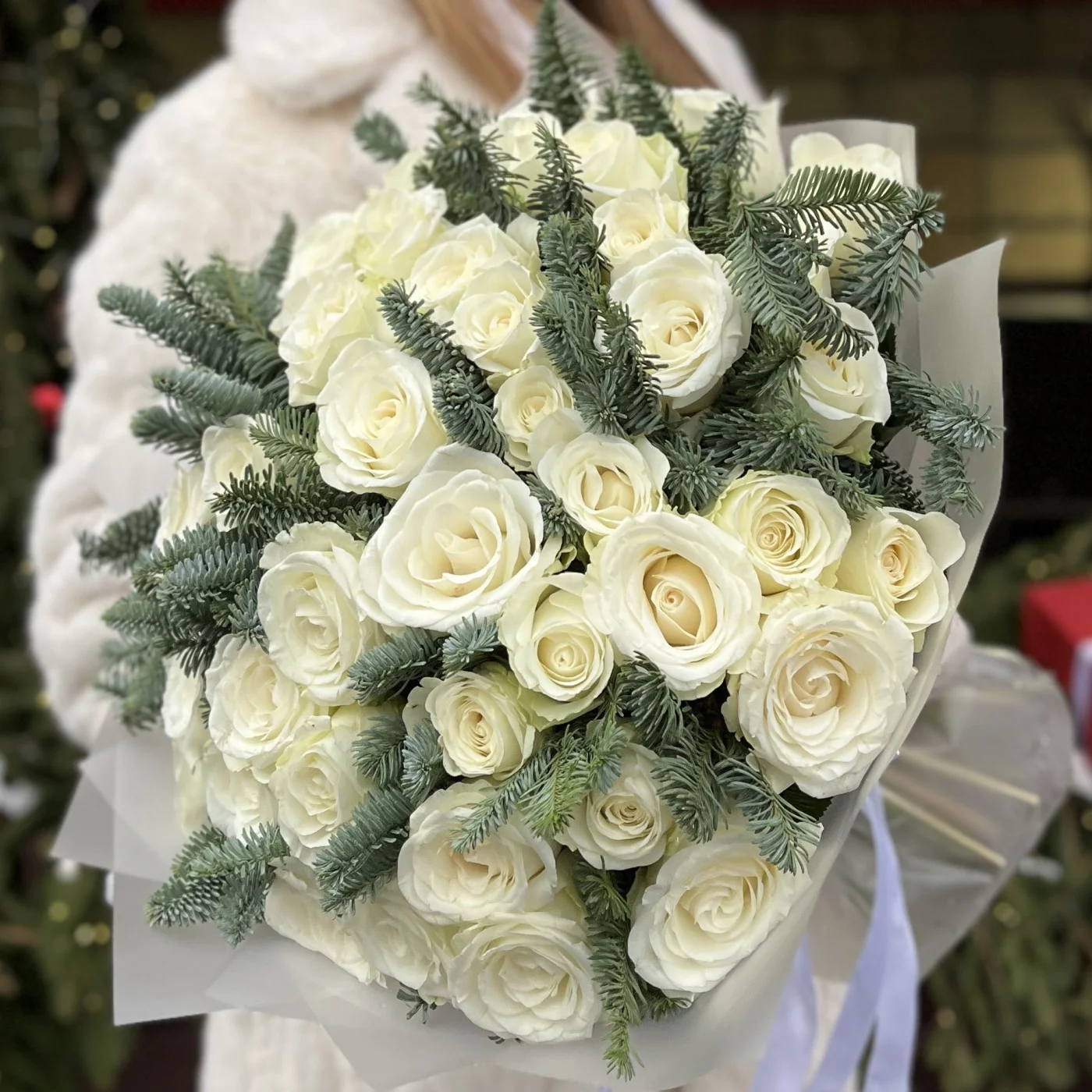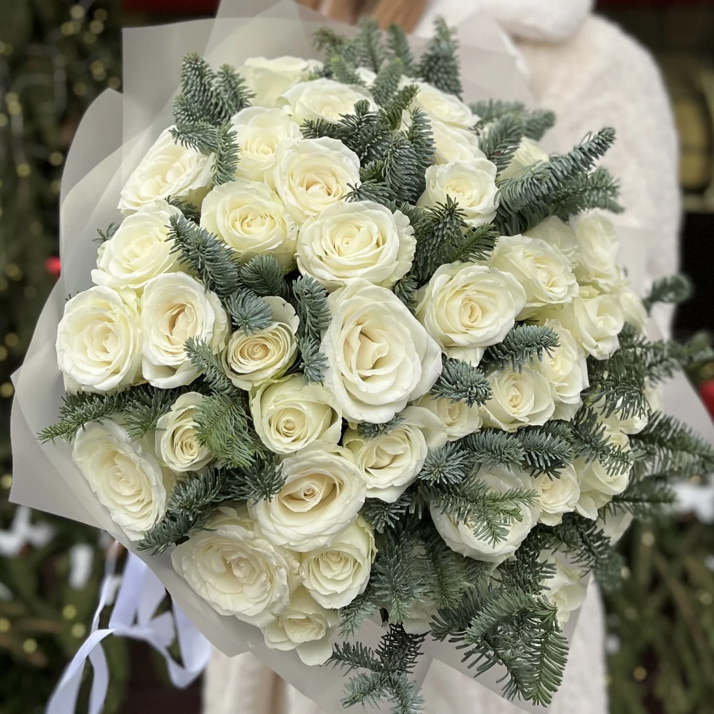 51 белая роза с нобилисом