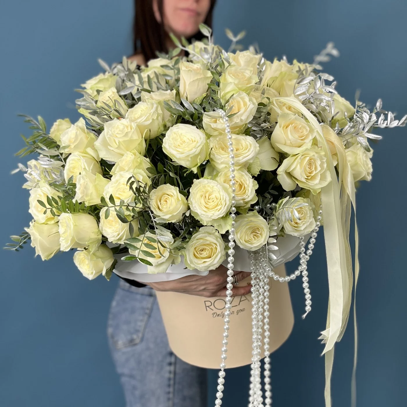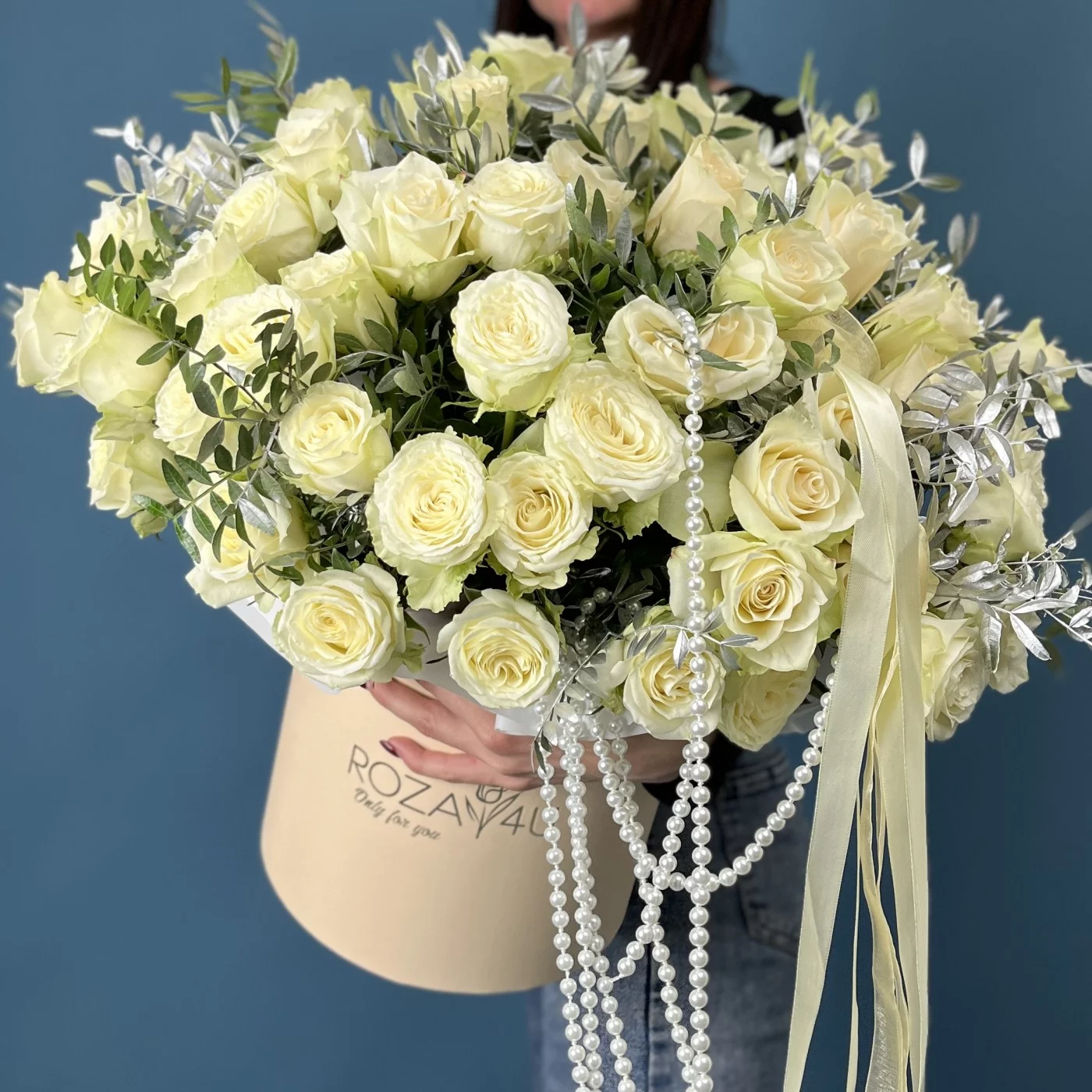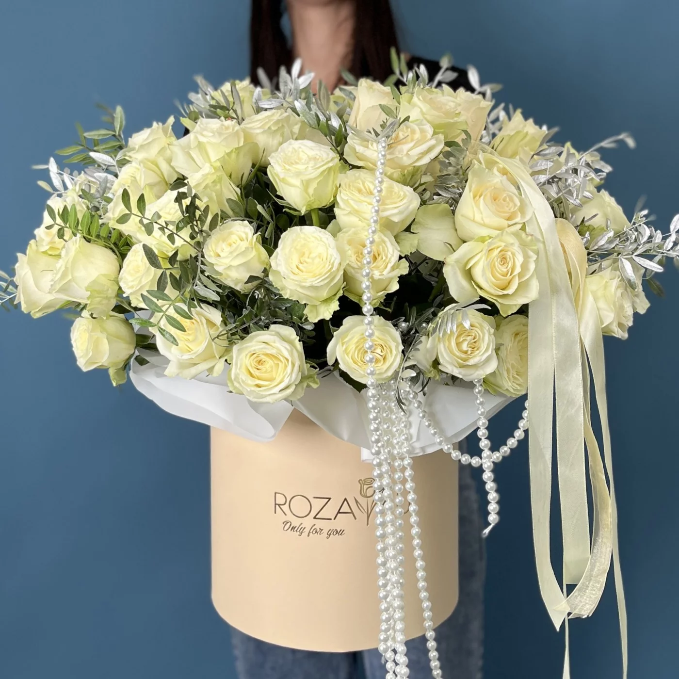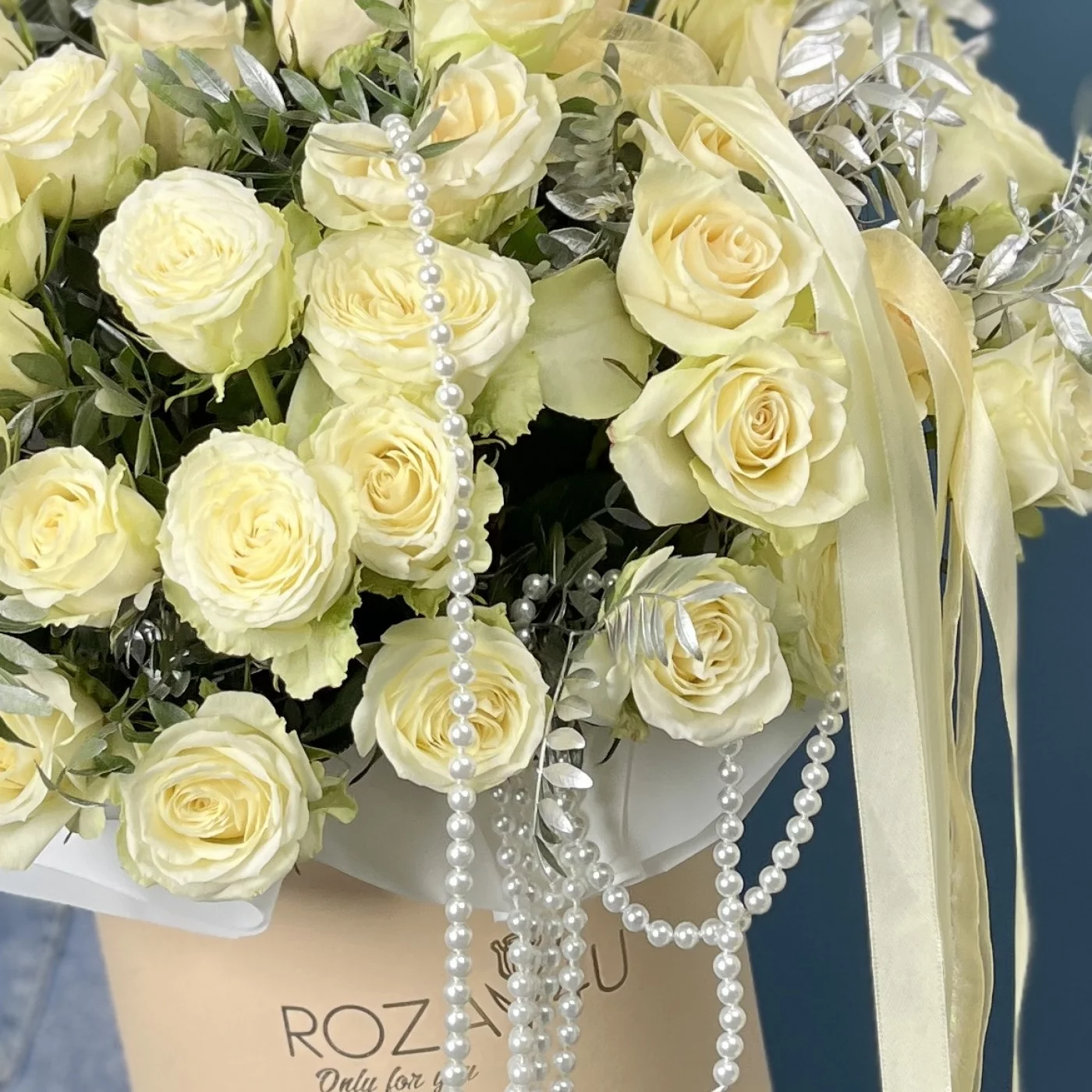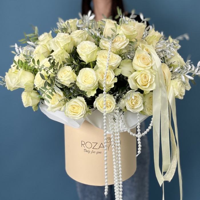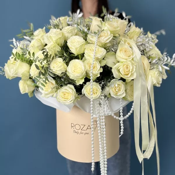 Элегантная коробка с аккуратно собранными белыми розами создаст особую атмосферу торжества и подчеркнет важность этого знаменательного события.
