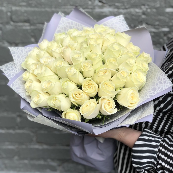 Нежнейший букет из белых роз с неповторимым тонким ароматом никого не оставит равнодушным. Белая роза является символом мира, дружбы, чистоты и добрых намерений. Преподнесите это ванильное облако из роз своим близким и наполните их день волшебством, нежностью и заботой. Букет идеально подойдет для первого свидания, расскажет о Вашей симпатии, а так же его уместно преподнести молодоженам, подруге, коллеге и членам семьи.