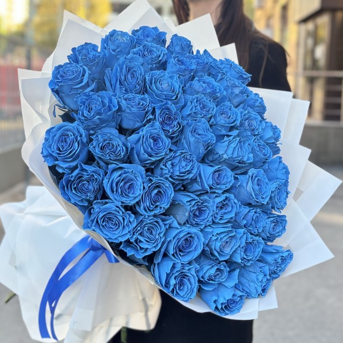 Необычная голубая роза, станет приятным сюрпризом на любое торжество.