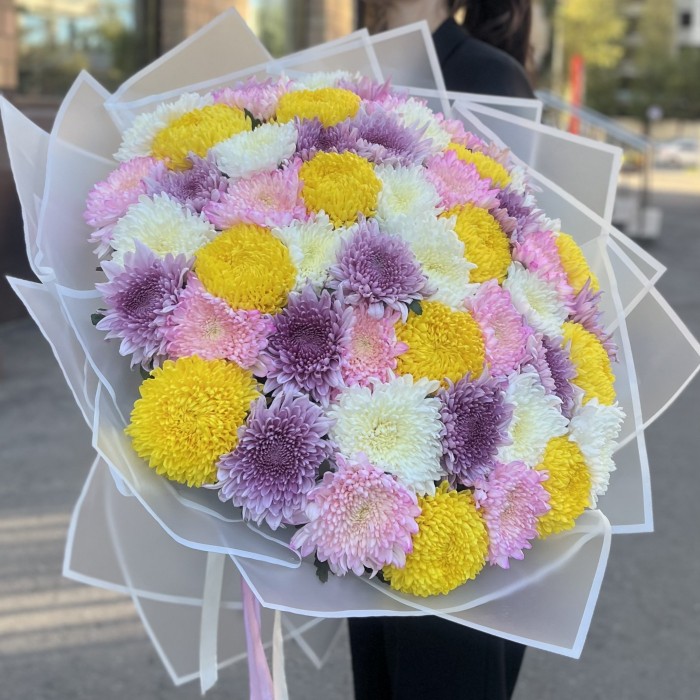 51 хризантема Микс — это замечательный выбор для создания яркого и солнечного букета!