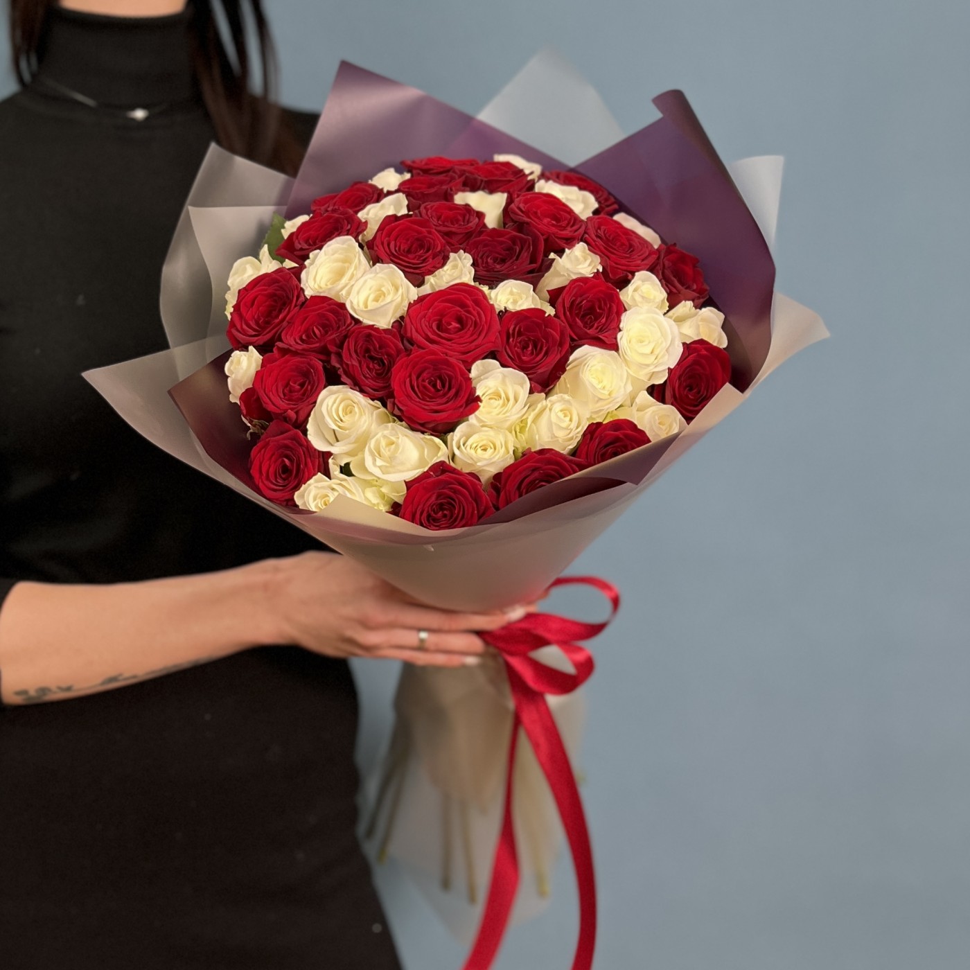 1кгБеспроигрышное классическое сочетание белых и красных роз - это Ваша абсолютная уверенность, что Вы не прогадали с выбором букета. Свежие высокие розы выглядят очень презентабельно, подходят для подарка дамам любого возраста и статуса. Это будет прекрасный подарок для любимой, для мамы и для других членов семьи. Букет отлично впишется в офисную атмосферу и станет приятным сюрпризом для коллеги или руководителя.